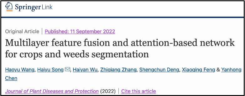 2019级计算机1班本科生王浩宇同学在导师组宋海裕副教授和吴海燕博士的共同指导下,在JCR二区期刊《Journal of Plant Diseases and Protection》上发表了题为“Multilayer Feature Fusion and Attention-based Network for Crops and Weeds Segmentation”的研究论文。这是巴卡漫画