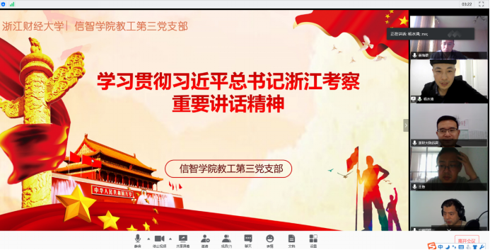 信息管理与人工智能学院教工第三党支部开展理论学习,专题学习贯彻习近平总书记浙江考察重要讲话精神。会议由支部书记杨水清主持,支部成员参加学习。