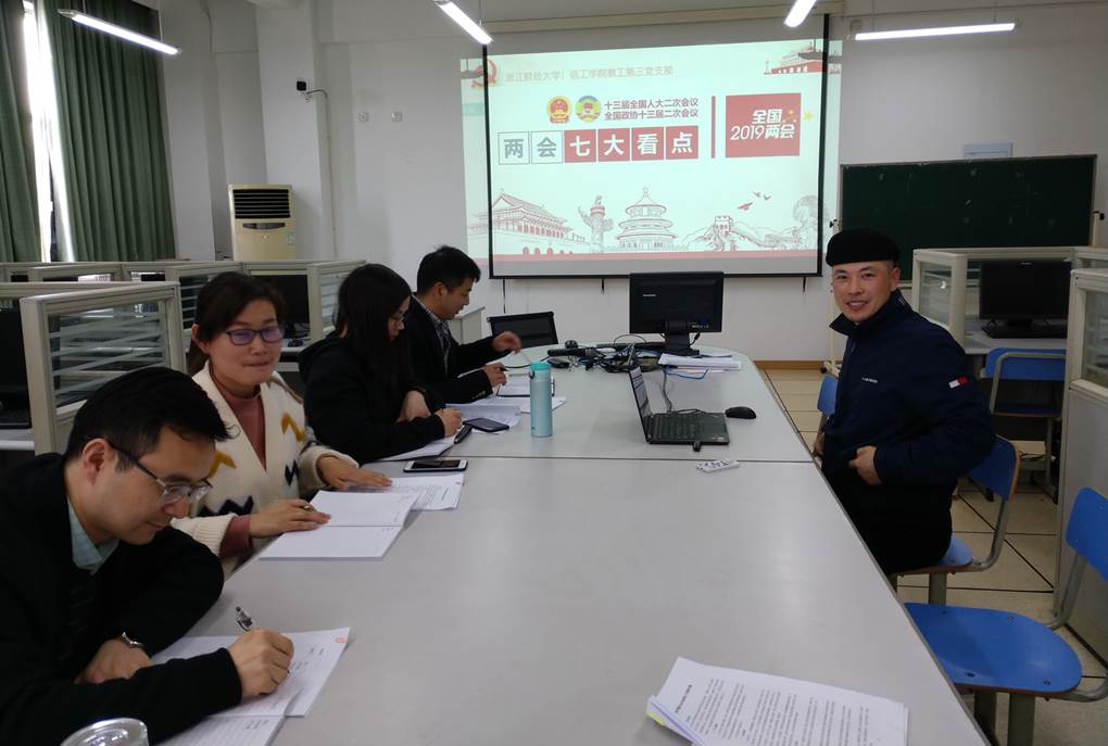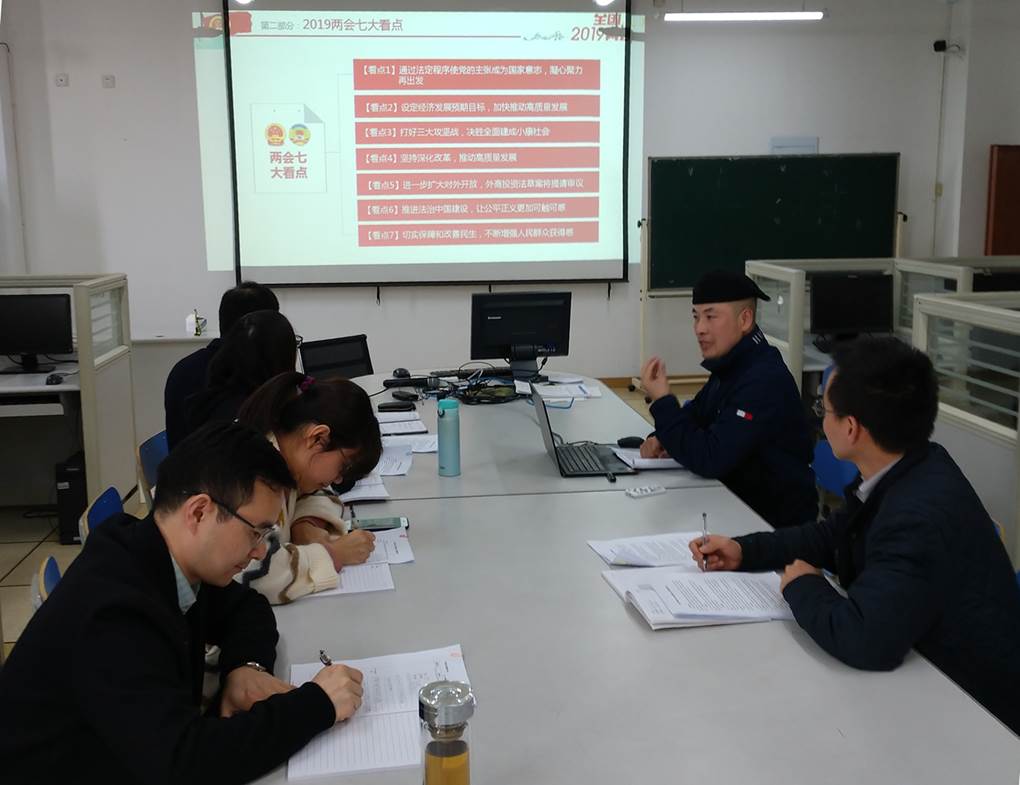近日,教工第三党支部召开了“两会”专题学习活动,支部书记杨水清带领全体党员认真学习了“两会”相关文件,解读2019年政府工作报告。