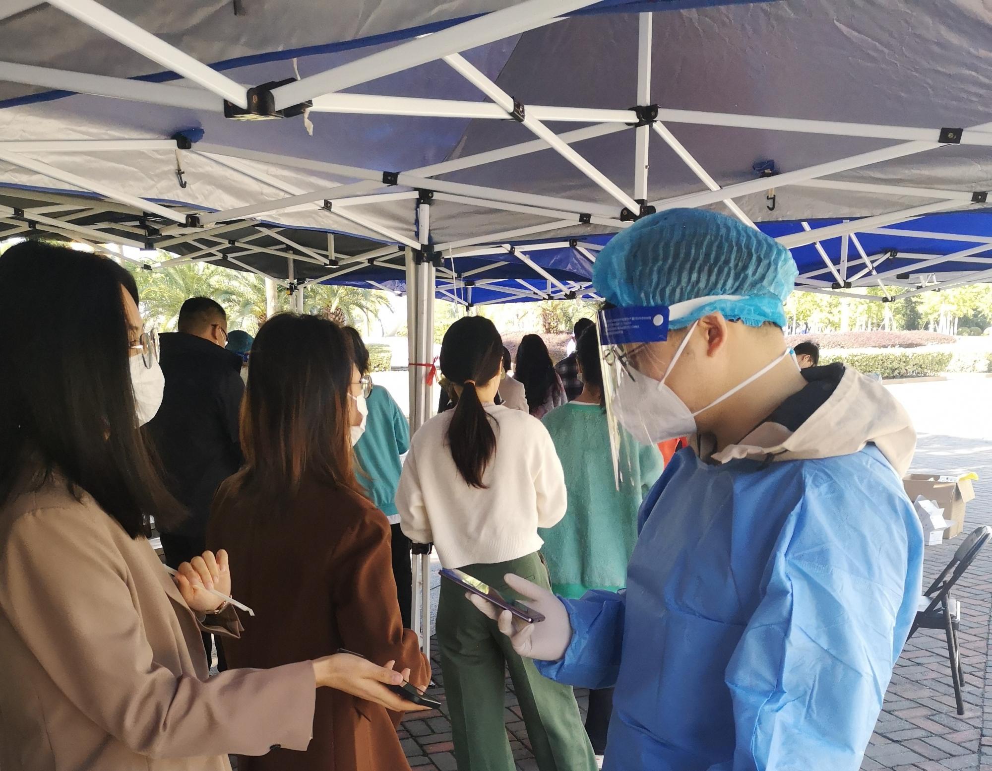 国庆长假以来疫情突起,给下沙各高校防疫工作带来了巨大考验,10月10日信息管理与人工智能学院多名教师党员积极报名学校防疫工作志愿者,共同做好全员全域核酸检测工作。