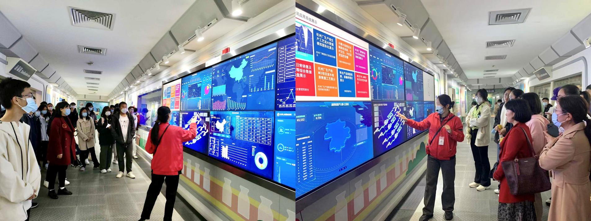 师生们在味全食品有限公司透明工厂进行了实地探访,不仅对厂区的现代化流水线、信息化控制系统、数据可视化中心等有了更加直观的了解,也对现代企业的生产运营模式和企业品牌文化建设有了更加深入的认识,同时对于如何将数智信息融入到实际应用有了不一样的体会。
