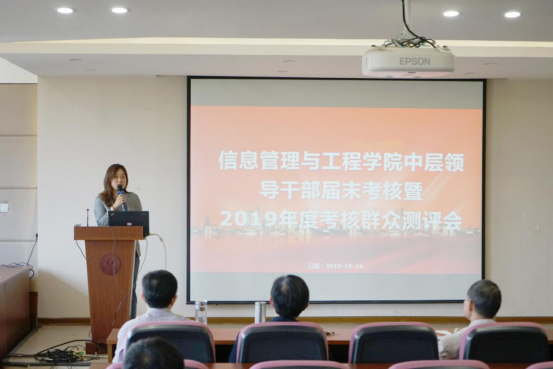 2019年10月24日下午,信工学院在9号楼302报告厅召开了信工学院中层领导干部届末考核暨2019年度考核群众测评大会,大会由学院党委副书记陆颋浩主持,校组织部副部长申屠莉、校机关党委李靓以及信工学院全体教职工参加了此次会议。