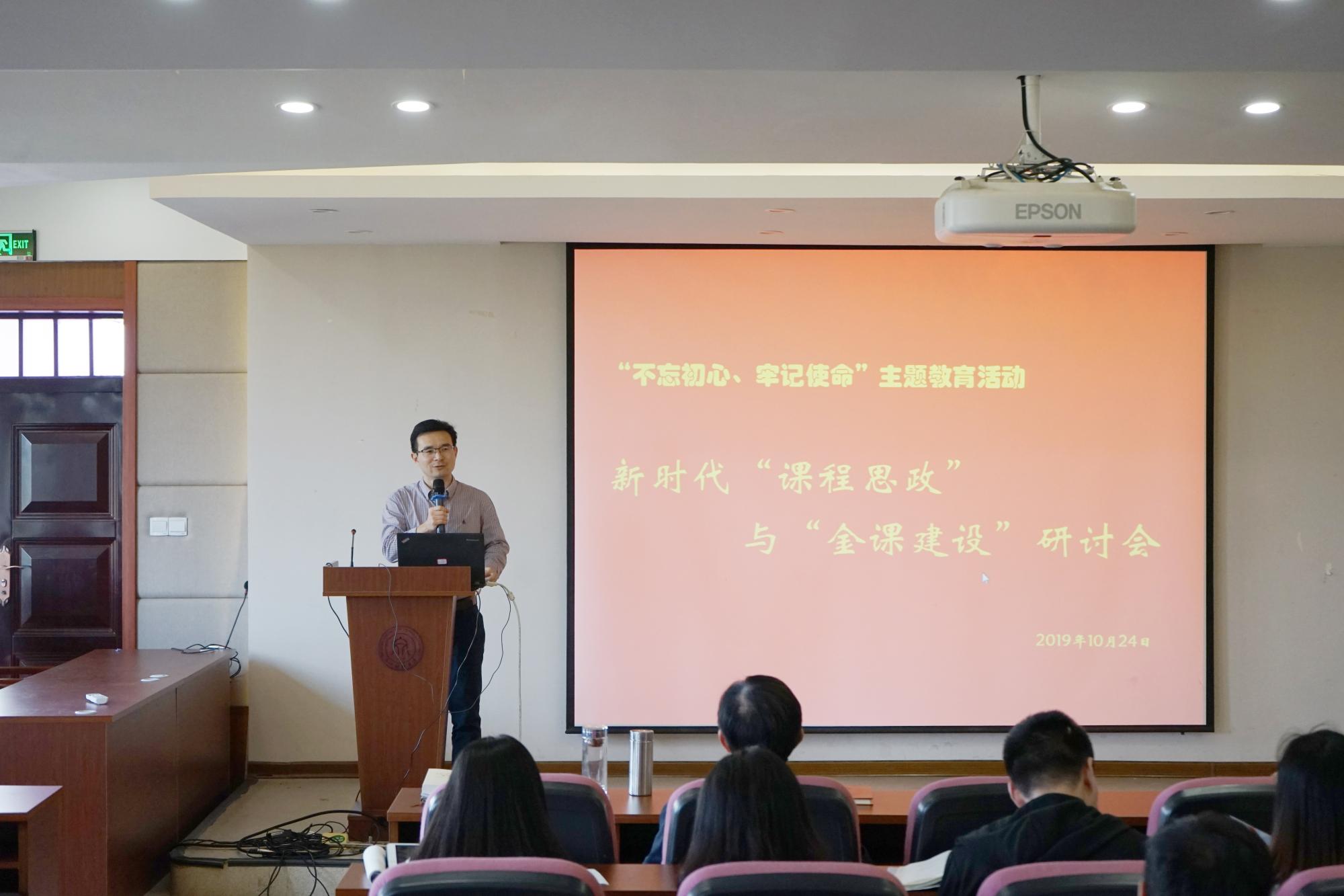 在课程思政和“金课”建设方面的总体情况和所取得的阶段性成果。他表示学院将围绕“立德树人”这一中心任务,将课程与思政无缝衔接、巧妙融合,通过教师的“传道、授业、解惑”,达到丰富课堂内容、活跃课堂气氛、提高人才培养质量的目标。
