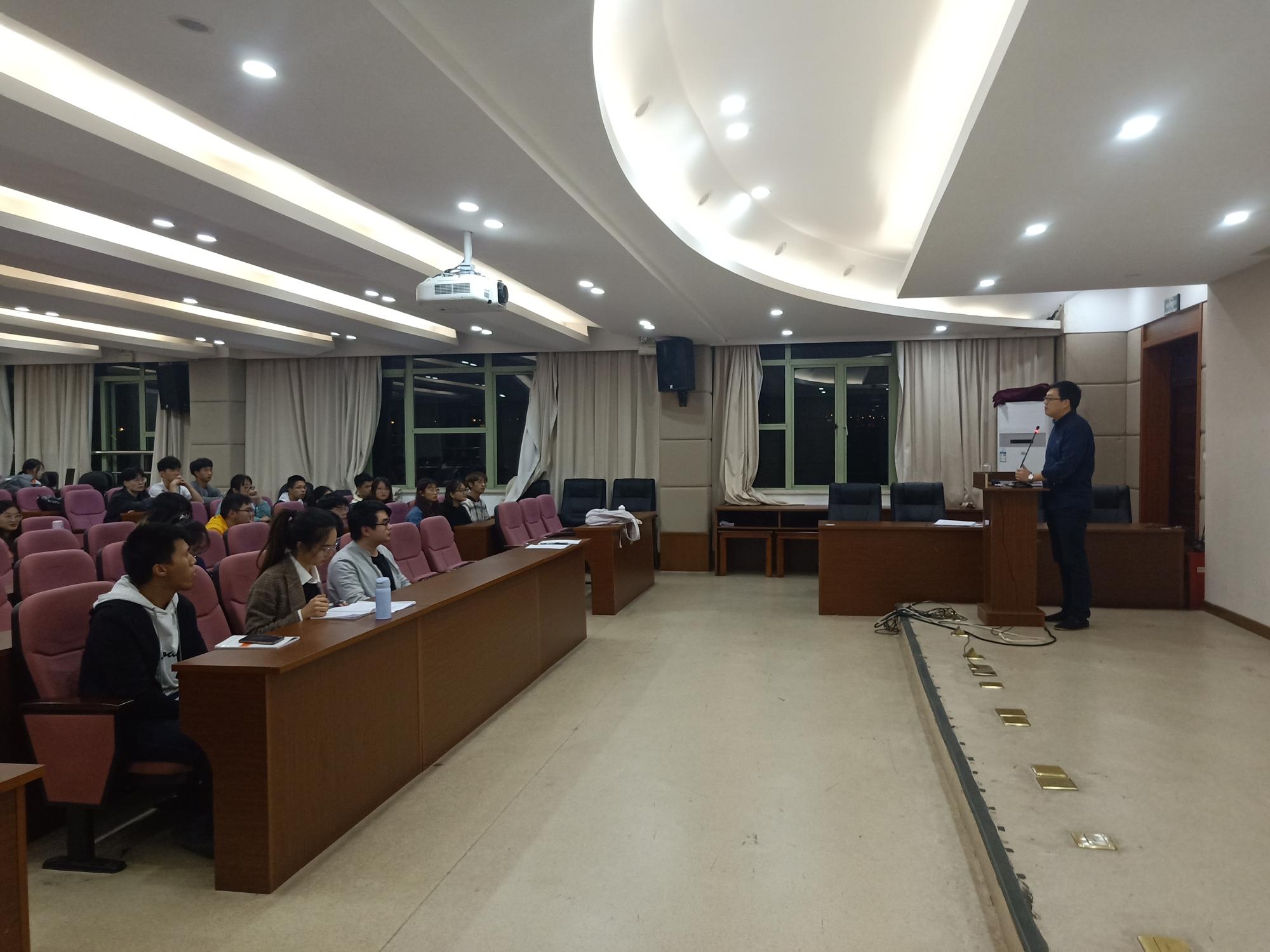 2019年10月29日,信息管理与工程学院召开学生寝室、班级文化建设及学生学风建设相关会议。会议由学院党委副书记陆颋浩主持,各班班级代表、园区管委会代表全体参与。此次会议中,陆书记围绕班风、寝风、学风“三风建设”与学生代表展开对话。