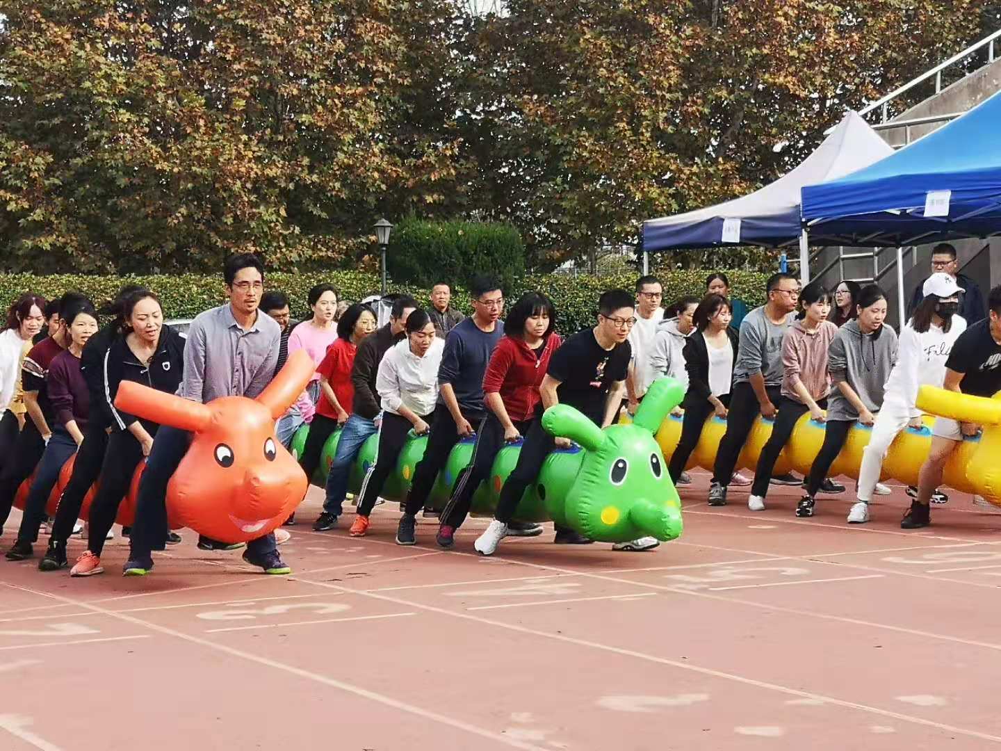 教职工也不落下风、奋勇拼搏,为学生运动员们做了榜样。