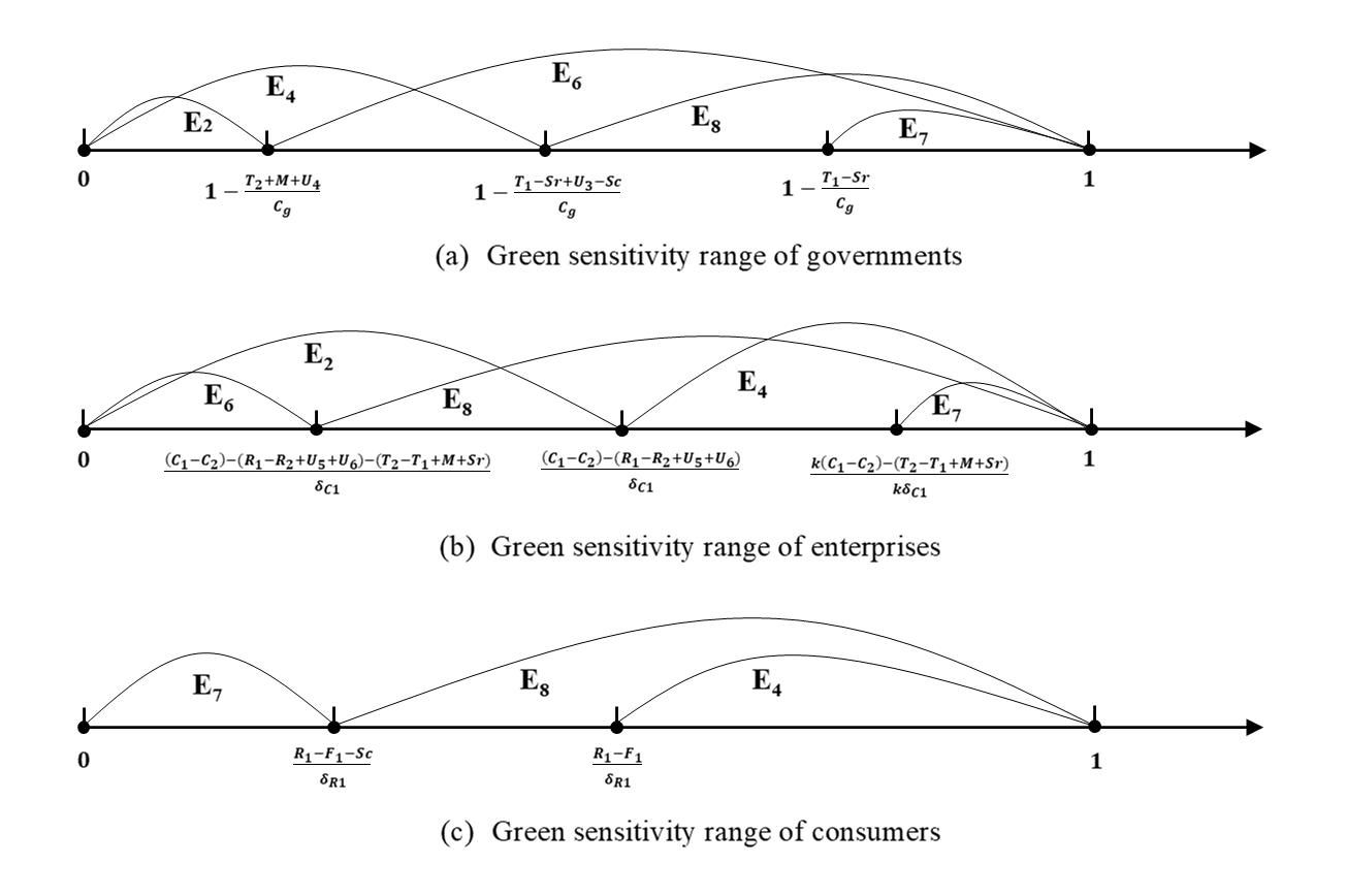 图二 不同稳定均衡点的敏感度区间