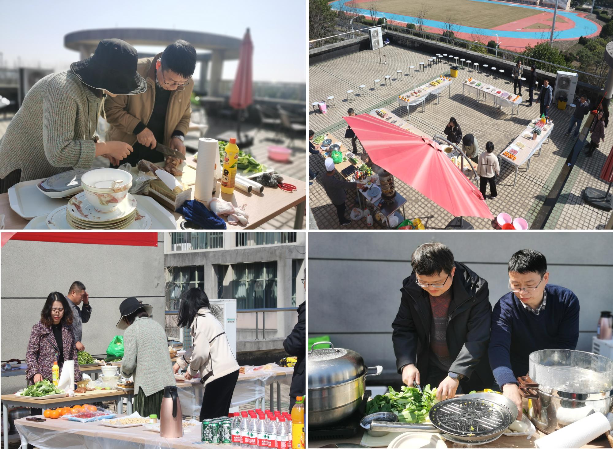 3月8日上午,学院分工会的各位委员在工会主席章华的带领下,早早开始布置场地准备食材,搬桌椅、接插线、洗菜刷锅摆盘,好生忙碌,学院党委书记徐奇伟和部分老师也加入到准备工作中来,人多力量大,很快便让我们的活动场地焕然一新。