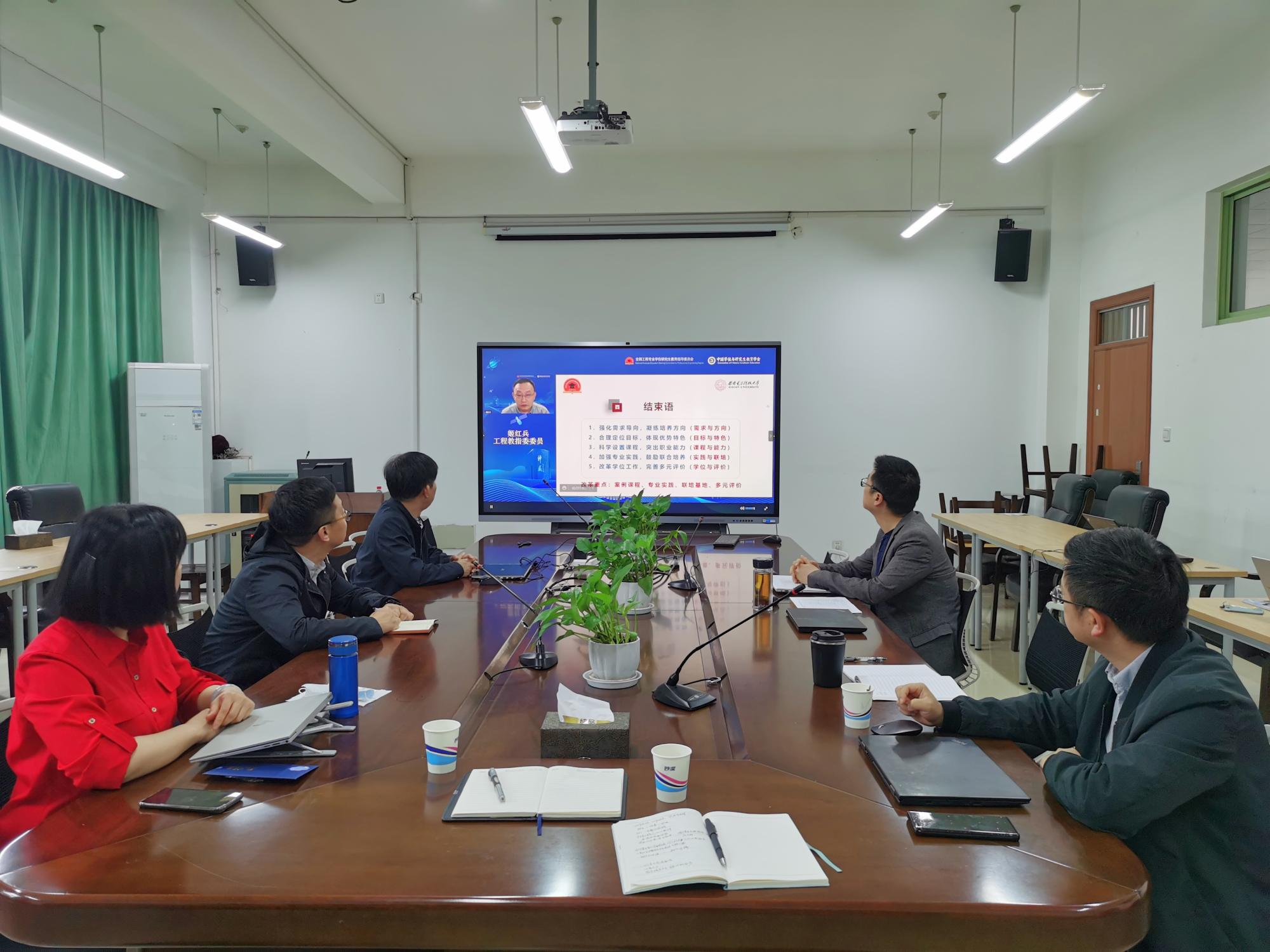 在404会议室集中观看了会议直播,学院领导、申报专硕导师教师及相关工作人员参加了会议。
