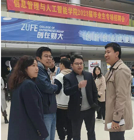 信息管理与人工智能学院2023届本科生和研究生毕业生招聘会在文化中心一楼大厅顺利开展,院党委副书记田聪,学生处副处长叶城均,学院辅导员及就业指导中心老师等莅临现场。