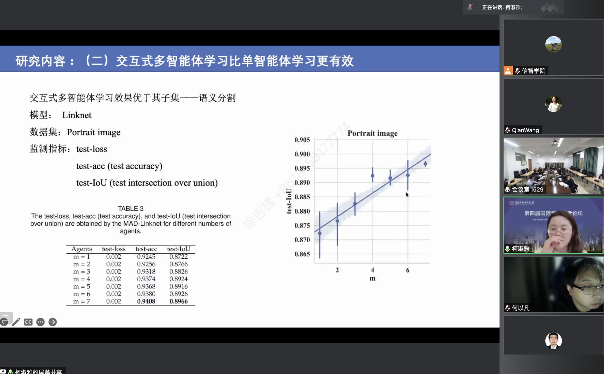 第四届国际青年学者论坛在第四报告厅举行。学院召开分论坛-人工智能与数字经济创新。因疫情防控要求,此次以“云论坛”形式举办,共8名来自筑波大学、澳门科技大学、西安交通大学、同济大学、浙江大学、昆明理工大学等全球知名大学的青年学者与会。学院领导班子、学科带头人、系部办主任和学院师生等代表线下参会,本次论坛由副院长陈远高教授主持。