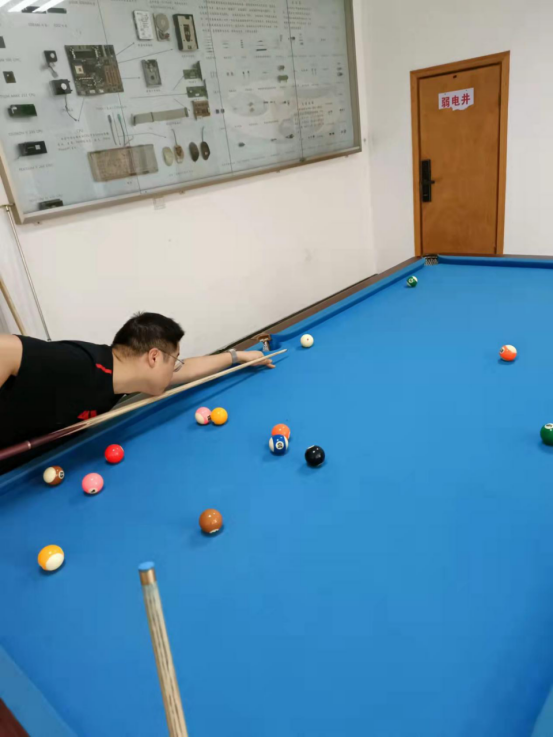 此次比赛分为初赛和决赛进行比赛,参赛教师首先进行小组赛选拔,然后小组前两名进入决赛进行最后比拼。比赛过程中老师们以饱满的热情和轻松的心态参与,一张一弛彰显绅士风范,一动一静尽显王者风采,精彩的球技引来观众的阵阵掌声。整个台球桌上充满了对台球炽热的斗气,充满了对比赛高昂的激情。