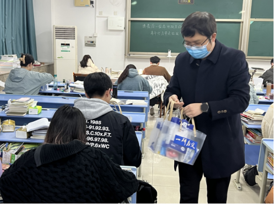 张帅院长鼓励考研学子在考研冲刺阶段再接再厉,他代表学院祝愿大家能够在考试中取得理想的成绩。追风赶月莫停留,“研”途尽处是春光。2023届考研已经进入最后的冲刺阶段,学院为考研学子们发放了考研文具礼包和防疫礼包,承载了学院对学子们满满的祝福,体现了学院领导和老师对考研学子的重视与关怀,通过考研礼包的发放,让考研学子感受到学院的温暖,进一步增强了学生的考研信心,助力信智学子以良好的精神面貌迎接即将到来的挑战。相信信智学子定能不负青春韶华,书写满意的人生答卷。