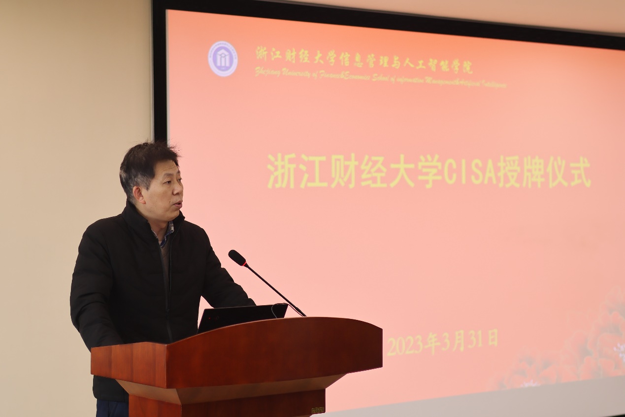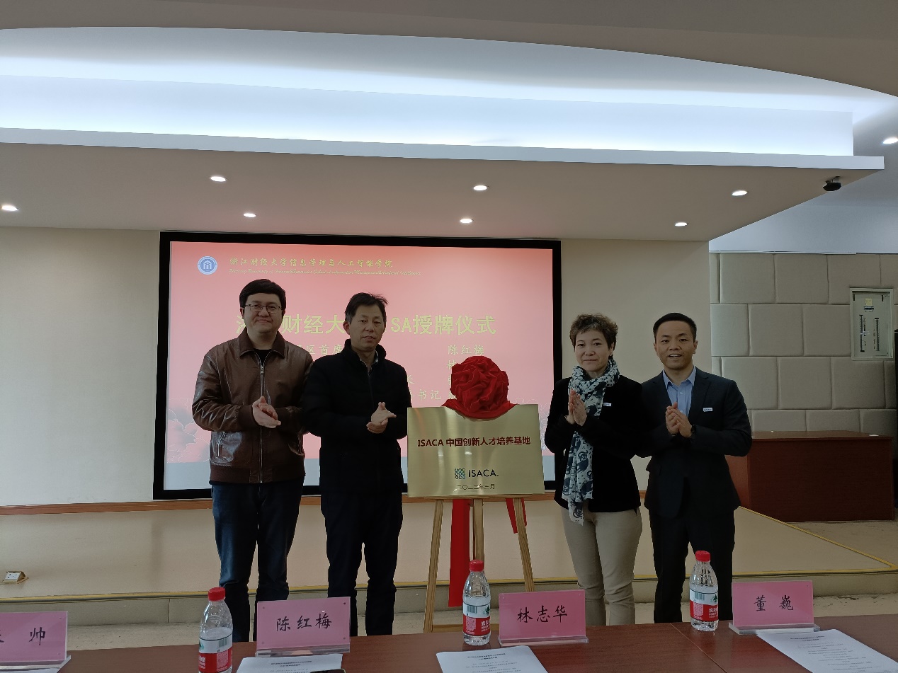 阳春三月,万物生机勃勃,我们迎来了信息管理与人工智能学院和ISACA中国区的合作授牌仪式,开启新一轮的全面合作。ISACA中国区首席代表陈红梅、业务发展总监林志华,中汇会计师事务所(特殊普通合伙)培训中心负责人董巍,学院院长张帅、党委书记徐奇伟与师生代表一起参加活动,会议由副院长隆清琦主持。
