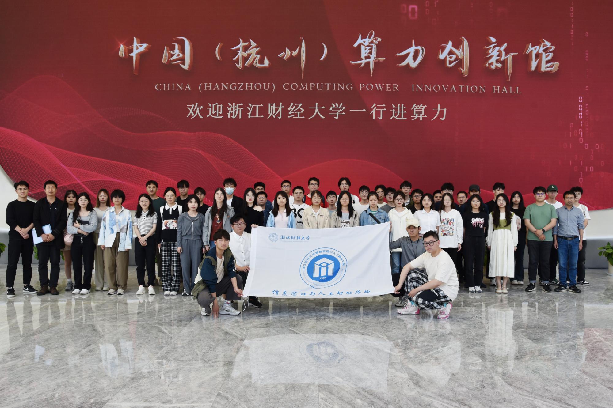 师生一行首先来到中国(杭州)算力创新馆,听取工作人员关于算力发展、算力应用、算力赋能产业以及算力产业链等介绍,并了解了算力小镇的现状与发展规划、算力小镇目前入驻企业以及算力产业的发展现状。