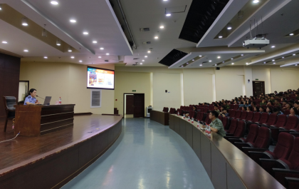 于9月6号下午在学术一报告厅组织开展“2023级新生反诈安全教育第一课”。本次讲座邀请了校保卫处的徐晓珊老师和钱恒月警官担任主讲。2023级全体研究生、本科新生参加了本次讲座,学习反诈知识。