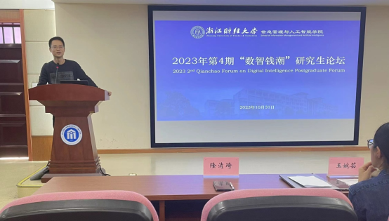 管理科学与工程研究生进行主题分享,邀请了王婉茹老师和程小英老师作为此次论坛的点评专家。学院分管研究生工作副院长隆清琦教授进行了开幕致辞,研究生秘书杨天亦以及全体在校研究生参加了论坛。