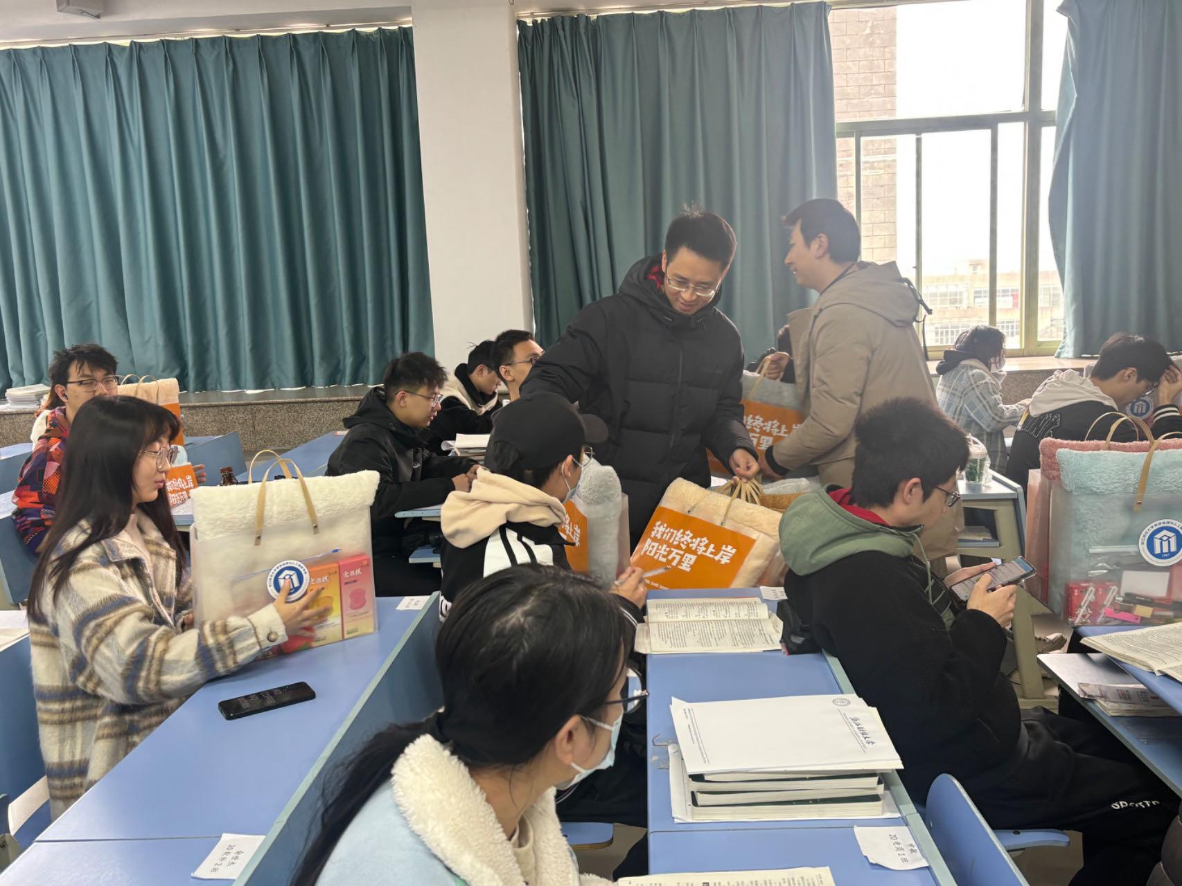 随后,老师们为同学们发放了考研文具和专属冲刺加油包:定胜糕、“柿柿如意”小配件、“金榜题名”文具套装……象征着圆满和丰收,承载着学院对学子们满满的祝福,体现了院系领导和老师们对考研同学的关怀,让考研学子倍感温暖。