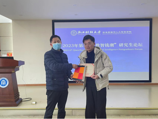 经过点评老师的合议,选出了本期论坛的优秀分享者——李国俊同学,并由张帅院长颁奖。