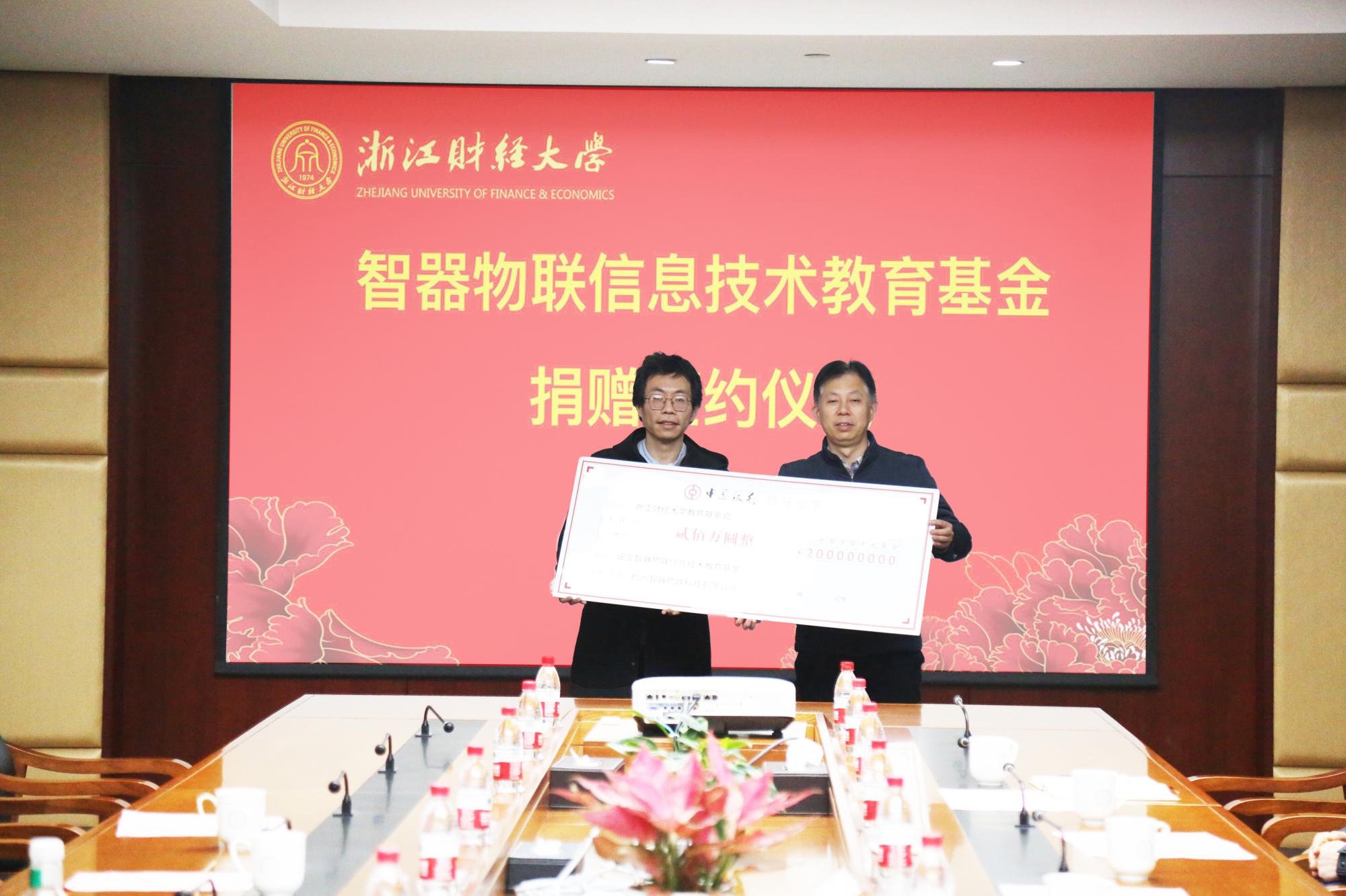 捐赠200万元,设立“智器物联信息技术教育基金”。校党委副书记徐晓东,杭州智器物联科技有限公司董事长、2007届校友徐佳路,校发展联络办公室,校友办公室负责人,巴卡漫画