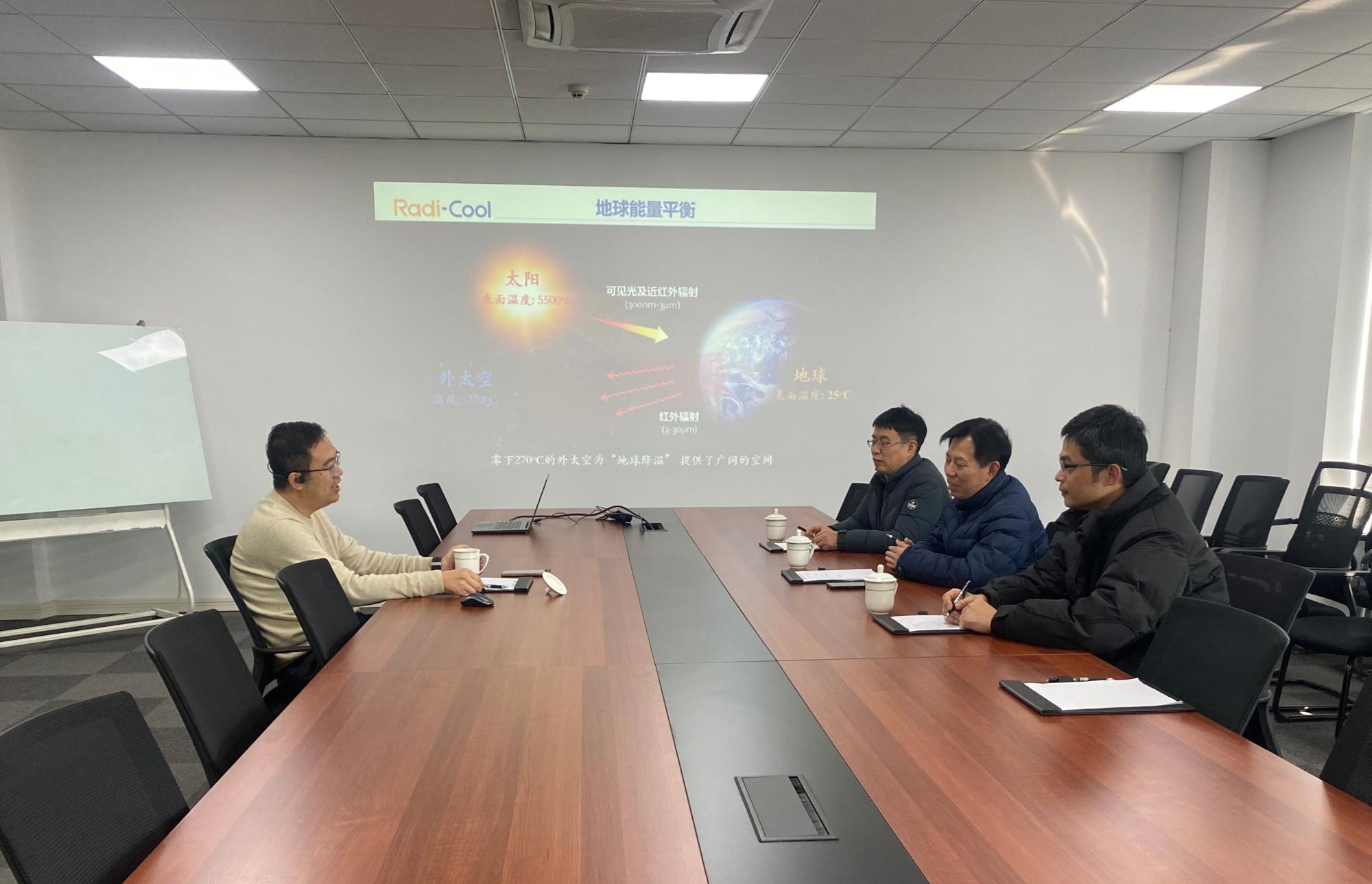 任长永总经理介绍了公司的基本情况、经营理念,公司是全球零能耗辐射制冷技术开发与应用的先行者,运用“辐射制冷超材料”技术可使物体与结构表面温度即使在太阳直射下都远低于室温,降温节能效果显著,对于减缓全球变暖具有重要意义,下属宁波瑞凌辐射制冷科技有限公司等,拥有辐射制冷技术浙江省工程研究中心、浙江省博士后工作站等研究平台,致力于推进辐射制冷技术的全面开发和应用推广。同时,任总也希望能与学校创新探索校企合作新模式,在人才培养、产教融合、科研合作等方面开展全方位多层次合作。