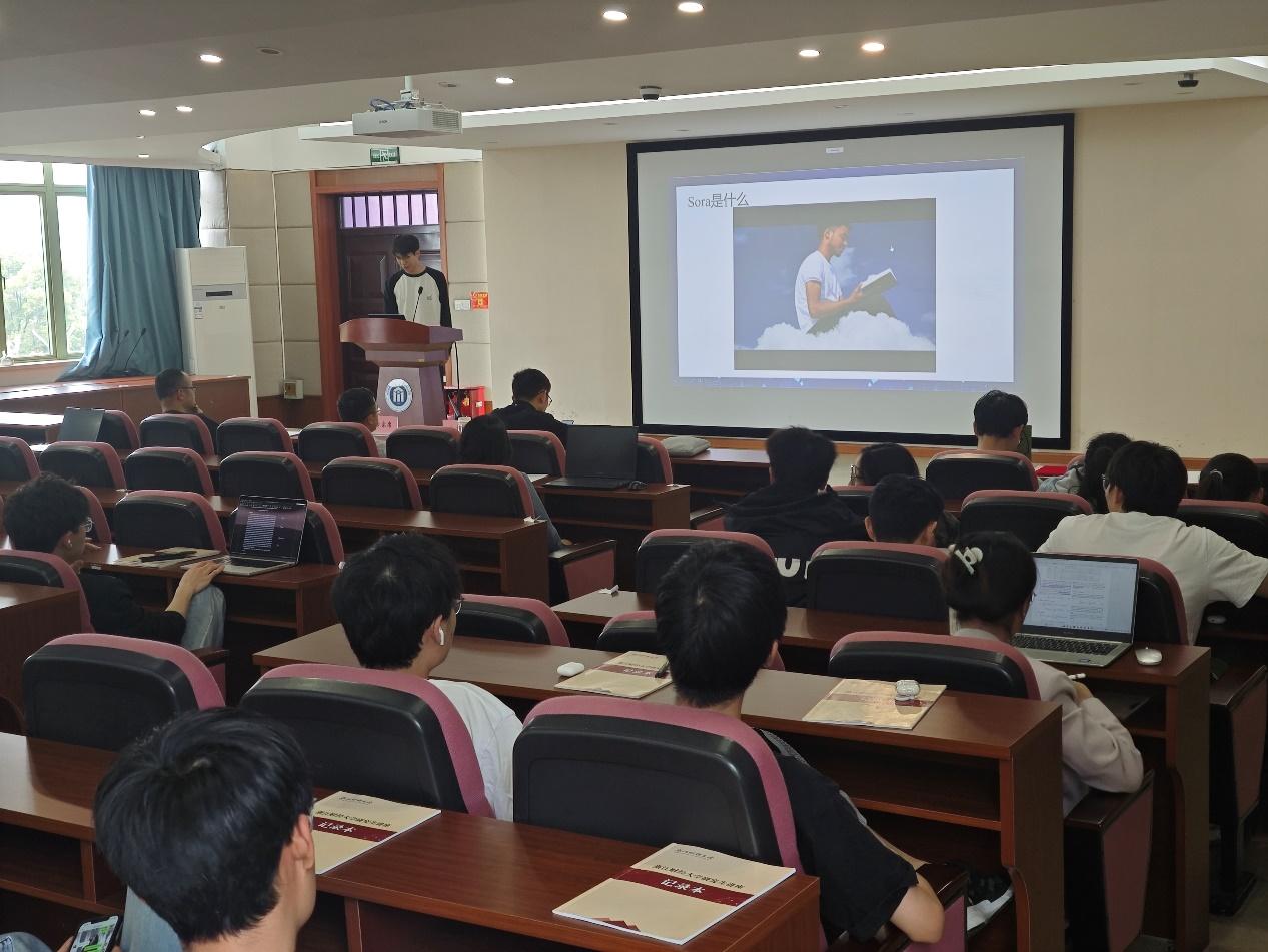 五位同学轮流分享了他们的研究主题。刘雨航同学分享了支付互操作性和非互操作性对平台竞争的影响。裘一蕾同学分享了阅读SCI论文的一些方法和技巧。应羽燕和夏洁曼同学分别介绍了AI大模型和Sora模型,对这两个模型的原理及应用做了详细介绍。倪瑜那同学分享了中国碳转移时空特征可视分析的研究成果。