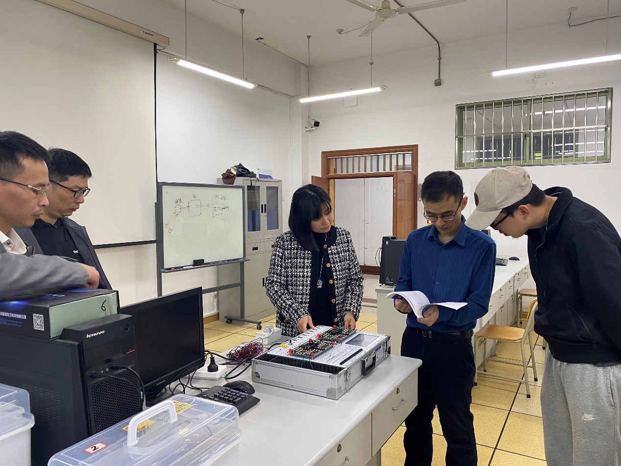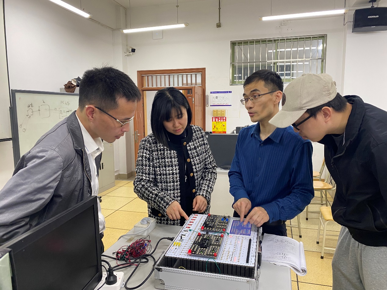 邀请杭州电子科技大学蔡本晓老师作模电数电实验教学专题报告,副院长朱凌、实验中心主任章华和实验教学团队参加会议。