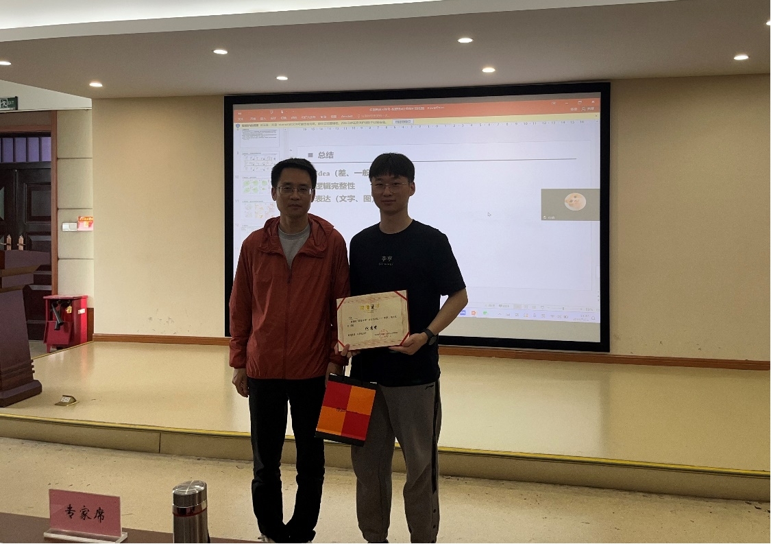 经过点评老师的合议,我们选出了本期论坛的优秀分享者——尹祥同学,并由隆清琦老师为他颁奖。
