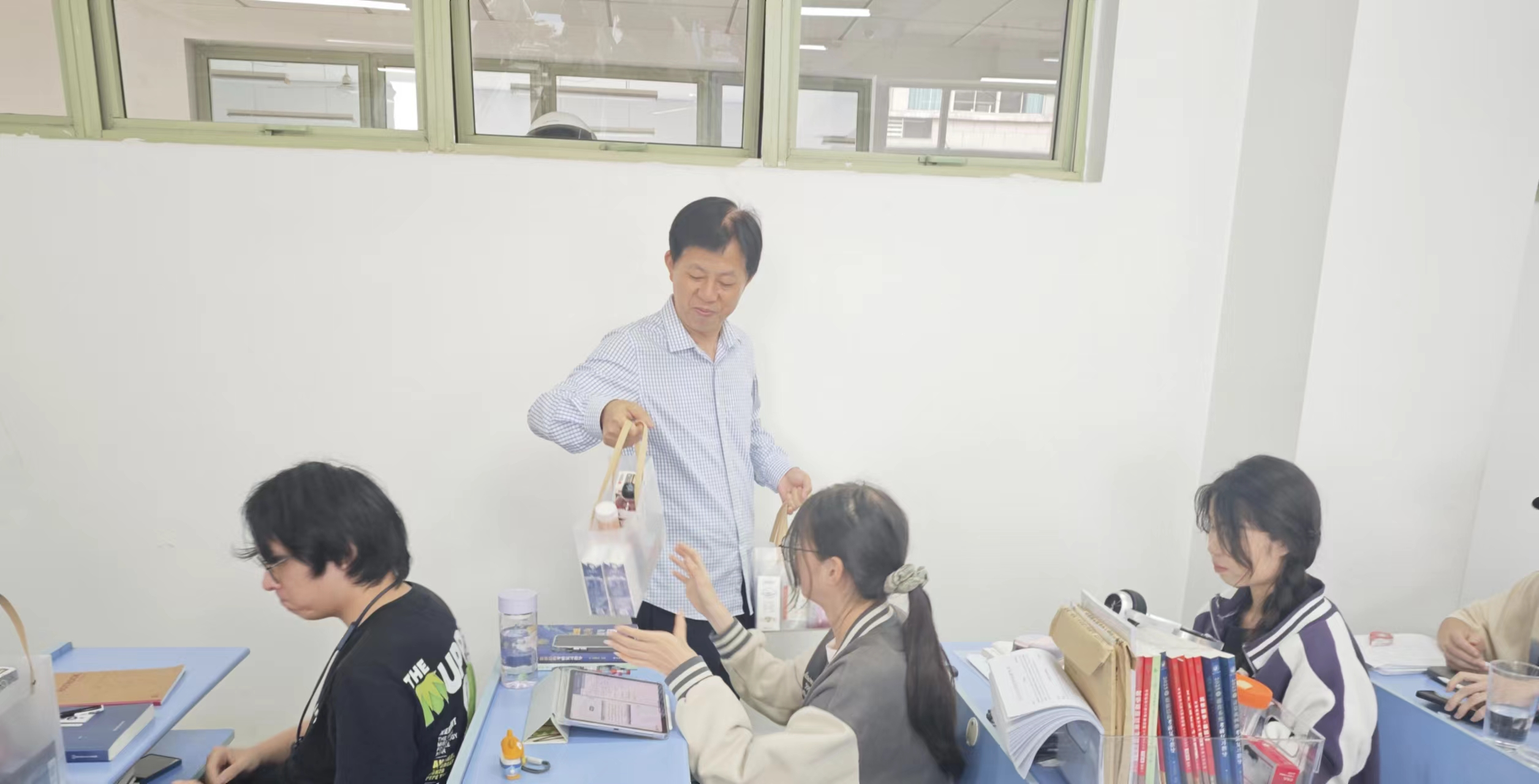 随后,学院领导为同学们送上了温馨的考研慰问品,这不仅承载着学院对同学们的深深祝福,也象征着学院对考研工作的重视与支持。同学们脸上洋溢着幸福的笑容,纷纷对学院的温暖与关怀表示感谢。