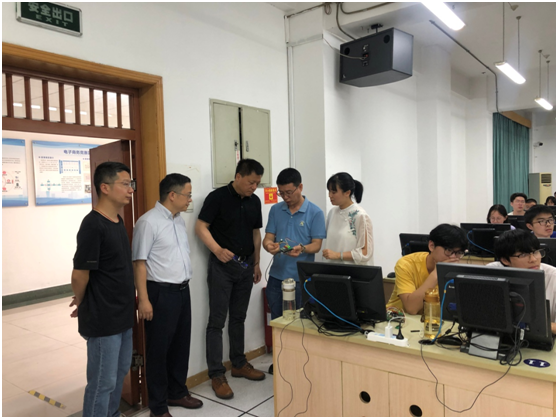 在走访过程中,魏江校长全面了解了学院在短学期专业实践项目的教学安排和实验室建设情况,听取了软件工程专业实践团队项目实训的部分小组汇报,并走进校企合作共建的专业实践项目《智能物联网数据采集系统设计与开发》课堂中,对课程实践情况进行了详细考察。他细致询问了学生的实验操作情况,并对参与课程的企业导师和校内专业导师表达了诚挚的感谢,慰问和肯定了他们在教学工作中的辛勤付出。同时,魏江校长鼓励学院要继续加强与国内外知名企业合作与交流,不断提升学院的学术影响力和社会声誉。