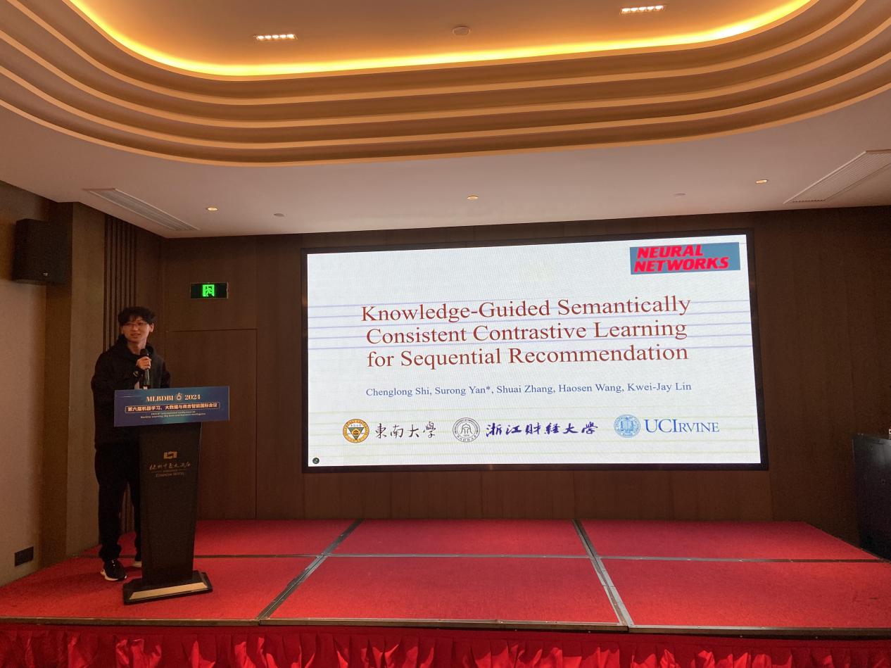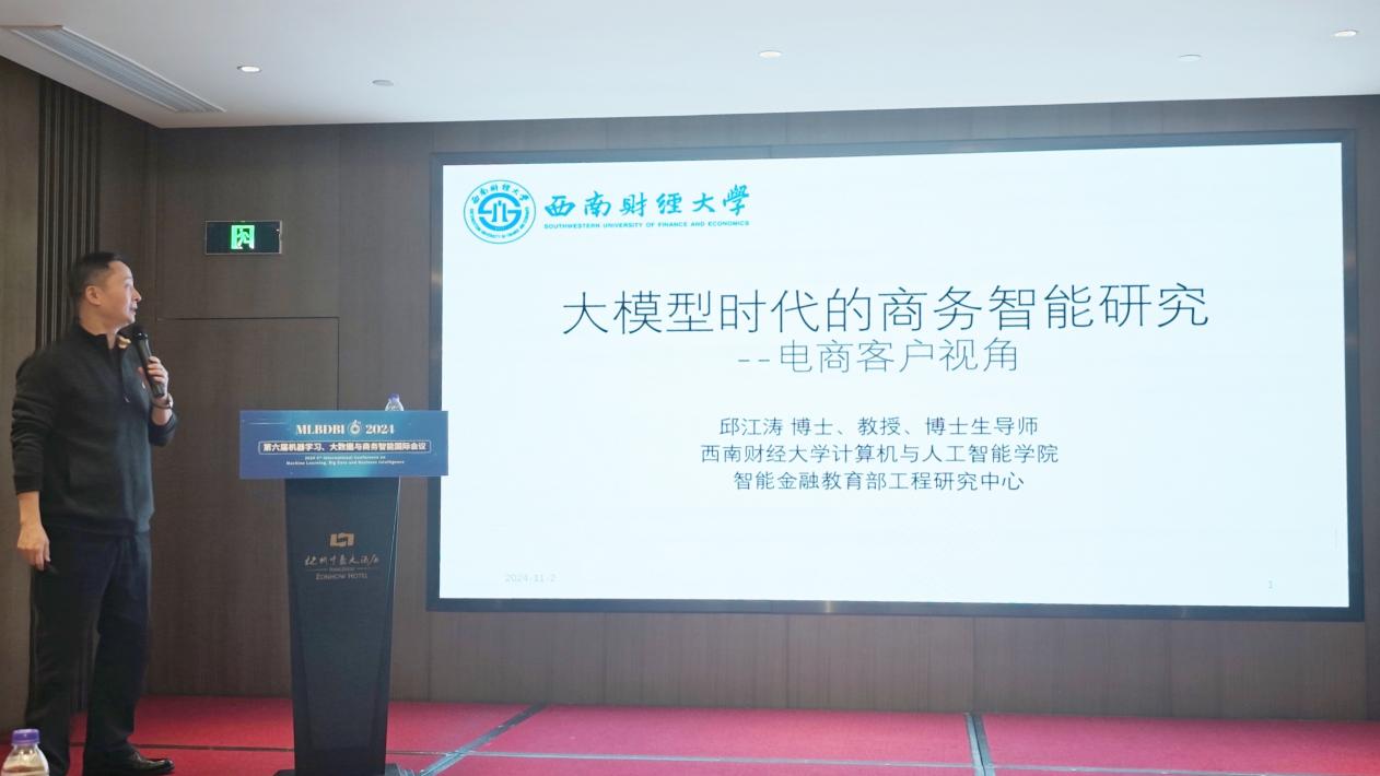 2024年11月1日至3日,第六届机器学习、大数据与商务智能国际会议(MLBDBI 2024)在中国杭州成功举办。西南财经大学邱江涛教授、深圳大学李彤教授、浙江工商大学毛郁欣教授、南京师范大学邵炜世副教授、南京工业大学沈谋全教授出席了会议并作主旨报告,东南大学博士生王浩森、史成龙分别作了口头报告。以及来自加拿大康考迪亚大学、澳大利亚查尔斯·达尔文大学、印度尼西亚邦达穆利亚大学、中国香港城市大学、上海大学中欧工程技术学院等40余位国内外相关领域的专家学者参加会议。