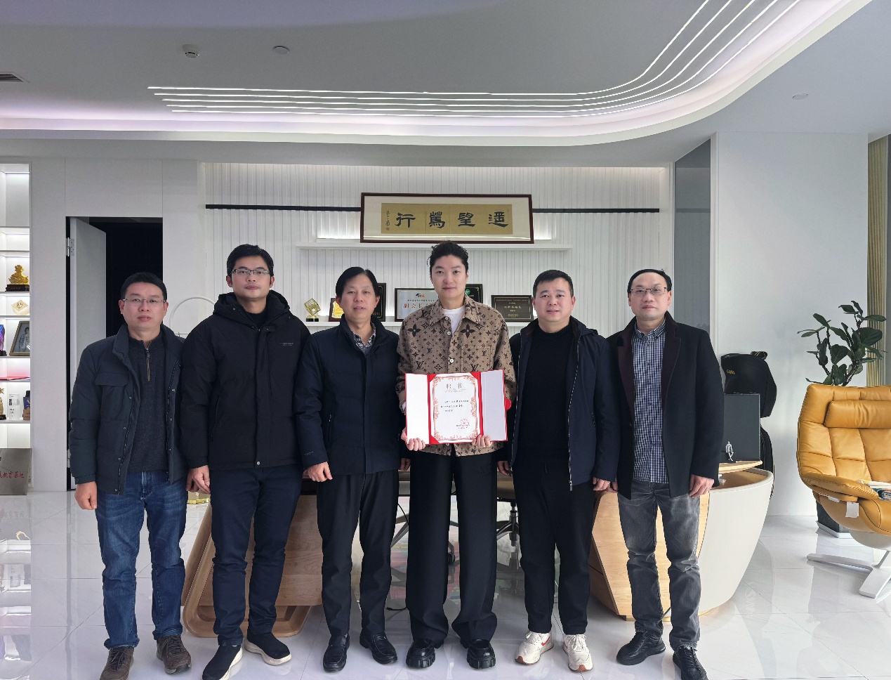 2025年1月21日,在新春佳节即将来临之际,院长张帅、党委书记吴翼泽、校友办主任吴玻一行,专程前往看望了学院杰出校友遥望科技董事长谢如栋、杭州聚恒投资有限公司董事长陈三春。
