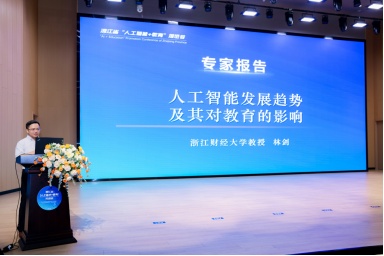 副院长林剑教授应邀在浙江省“人工智能+教育”推进会上做了题为“人工智能发展趋势及其对教育的影响”的专题报告。