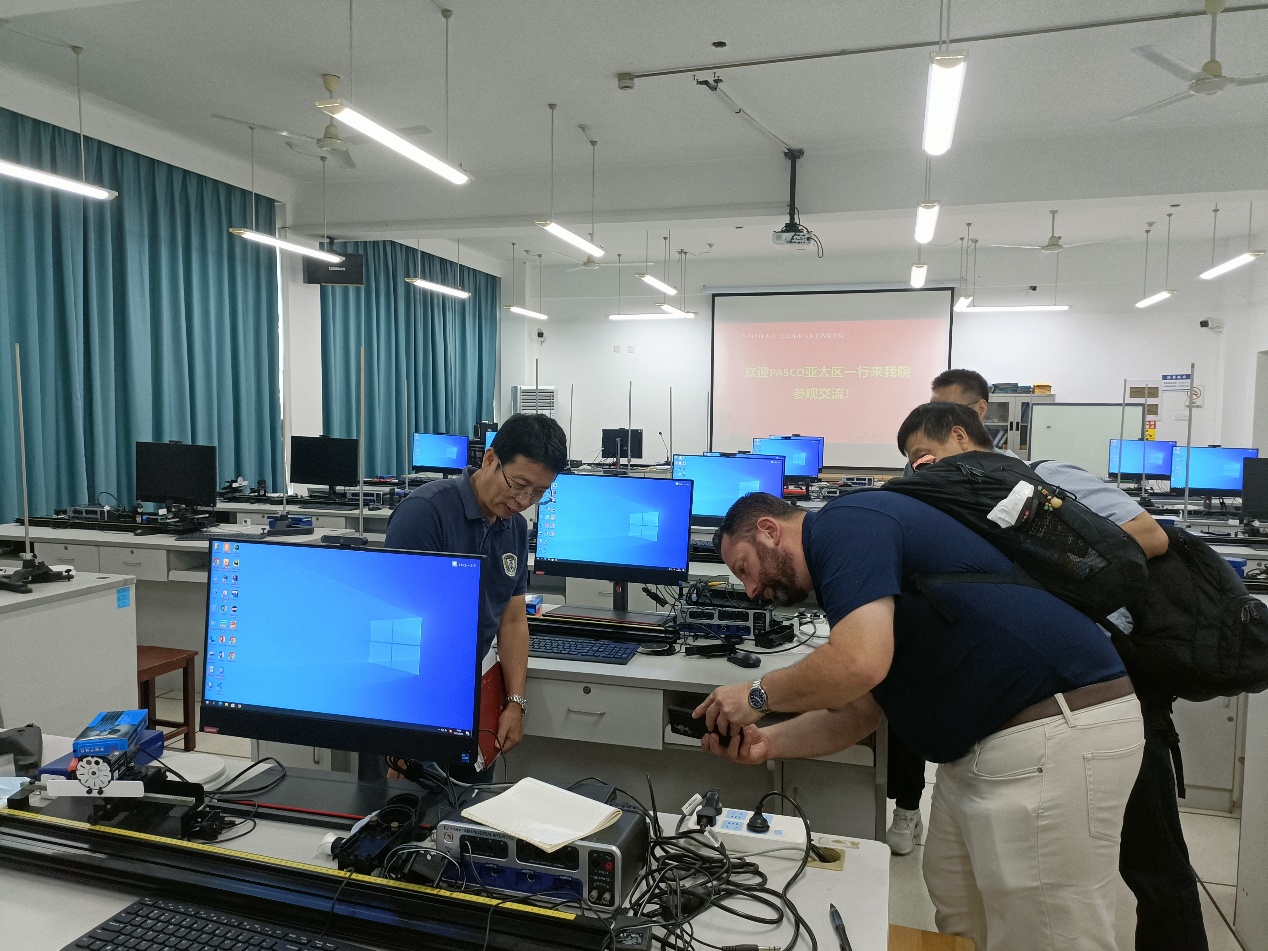 为深化校企协同育人机制,推动物理实验教学改革与质量提升。近日,PASCO亚太区代表团队莅临学院实验中心,就物理实验教学开展情况、设备应用与升级以及未来合作方向展开深入考察交流。学院实验中心章老师、姜老师对代表团的到来表示热烈欢迎,全程陪同交流并就实验教学创新与发展进行了深入探讨。