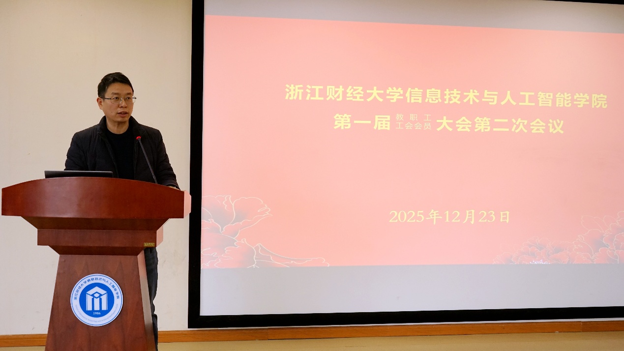 大会听取了学院张帅院长所作的2025年学院工作报告。报告既全面总结了2025年所取得的显著成绩和快速发展,客观分析了学院存在的短板不足、面临的困难挑战,提出了学院在“十五五”期间,将紧扣学校“新财经战略”定位,聚焦“智能技术赋能经管场景”核心命题,形成“财经特色鲜明、学科交叉融合、科研创新活跃、社会服务突出”的学科生态与发展格局,全面支撑学校“新财经战略”,成为数字经济领域复合型人才培养与技术创新的重要基地。
