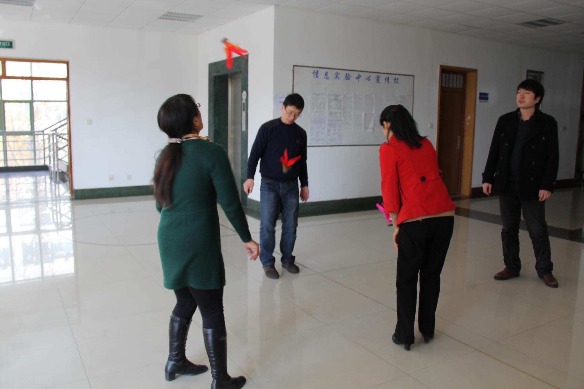 广大教师的校园生活,营造健康文明、积极向上的校园氛围,增强教师间的凝聚力和合作意识,愉悦心情。学院在在12月10日-12月24日(其中12月10日、17日、24日为活动集中开展日)开展了以““踢毽子”、“扔飞镖”、“软式保龄球”等3个项目的教师全民健身活动。