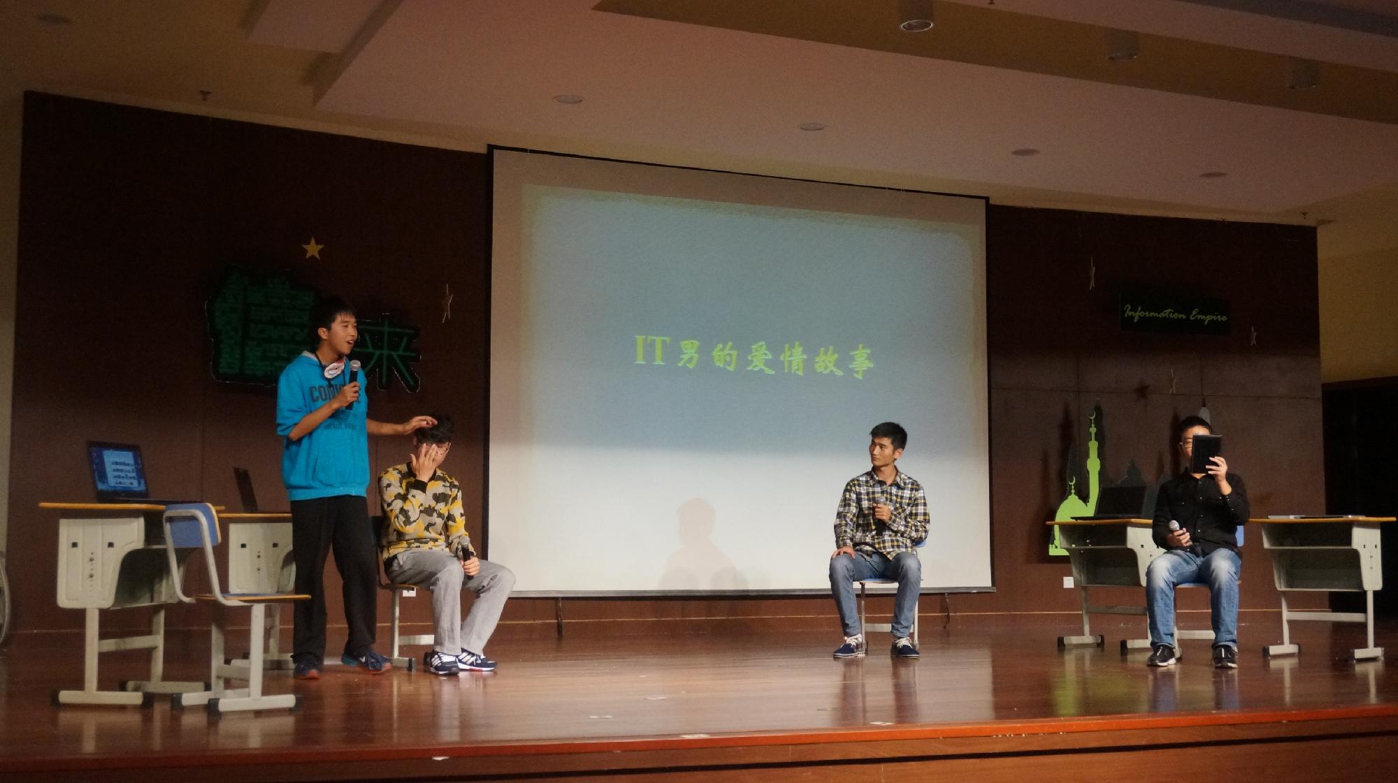 晚会一开始的开场舞节目《零下舞度》就深深吸引了观众的眼球,带着荧光绿的黑衣人在舞台上活力四射、独具一格的表演形式为观众带来了无限惊喜,也迎来了一阵阵喝彩声,体现了信息学院学生别致的新颖构思及动手创新能力。接下来的情景剧《IT男爱情故事》也迎来了观众们的掌声。相声《请您吃饭》更是与现场观众玩起了互动,将晚会的氛围推向了一个小高潮。诗朗诵《友谊万岁》让我们感悟,时光荏苒,光阴终要载着我们的青春奔向远方,但有一样东西可以长存,那便是我们的友情。喉嗓棒的俊男美女们集结的歌曲联唱节目《新鲜感》又让现场观众陶醉在了美妙的音乐世界中。歌舞剧《小黄人之歌》的表演者们模仿小黄人惟妙惟肖,全场观众都忍俊不禁,他们以卖力的演出换来了观众的笑声及认可。军训回忆录《我的军魂》仿佛让军训的场景重现,男生排女生排一起拉歌,一起嬉笑,入学近两个月,我们还未完全融入这个城市、这个学校,但我们却已告别了一帮人,没错,就是我们的教官,节目最感人的部分也莫过于一段精心制作的小视频中教官们对我们的诚挚祝福以及殷切期盼。模拟发布会《阿里巴巴风云》以幽默诙谐的语气逗笑了全场观众,也让我们开始思考信息时代信息的重要性。走秀《waiting for you》让我们跟随着表演者的脚步,体会到了时光通道中那些故事中的景象,每个时代都有专属于那段时光的专署烙印,而我们对于每一段岁月都有或多或少的独家记忆。最后一个节目是各学院青协部长带来的演讲《爱心天使》,部长们的真情实感感动了现场的观众朋友,激起了他们为志愿活动献出自己一份微薄力量的行动,也让我们青年一代意识到了帮助别人是一项极富有意义的事情。