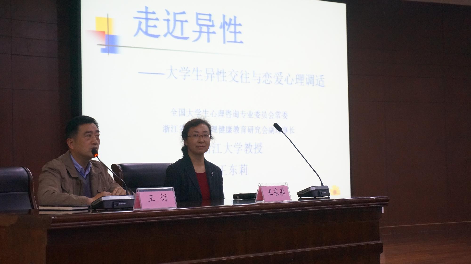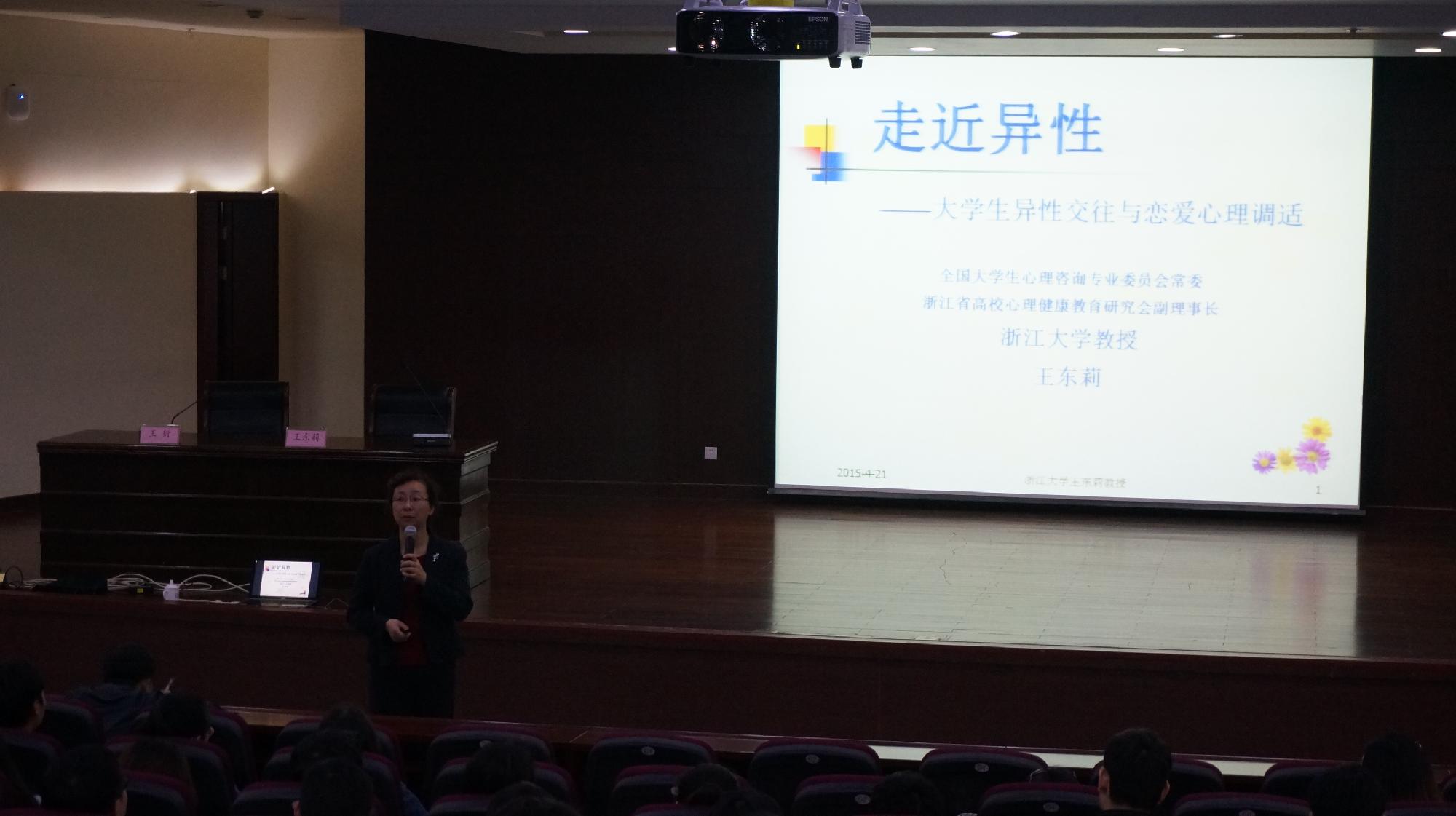 4月21日下午,信息学院桫椤心理工作站在学术四报举办了一场关于大学生异性交往与恋爱心理调试的心理健康讲座。本次讲座邀请到浙江大学的王东莉教授作为主讲人。信息学院党总支书记王衍教授主持并做了欢迎词。信息学院、校思政部及二级学院等师生参加了此次讲座。