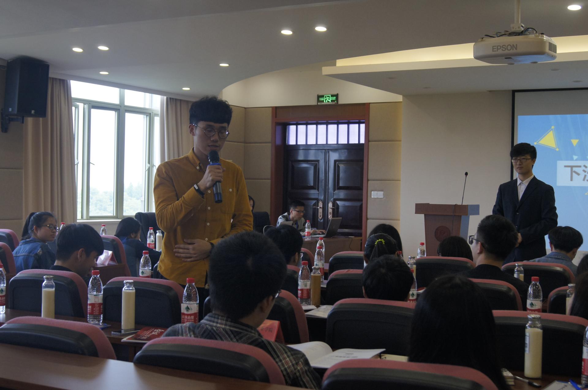 学生会副主席王旭东主持。这个环节是针对具体问题进行交流,王旭东首先抛砖引玉,各代表积极发表自己的看法。抽签回答问题更是将整个交流会气氛带上了高潮,代表们不论是抽到“工作分工不明确”这样严肃的问题,还是抽到“如何保持单身狗的尊严”这样趣味性问题,都一一认真进行了回答。活动的最后,学院2015届毕业生原学生会主席林达学长应邀进行了发言,他分享了他在学生会的经验以及创业经历,并表示他的很多能力都来源于学生会,希望所有人都能坚持初心,为了目标努力奋斗。
