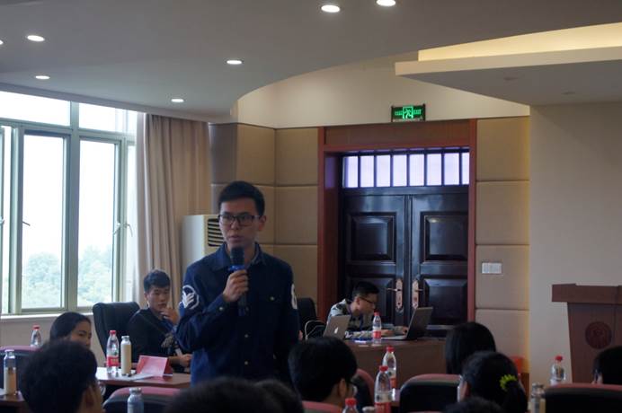 学生会副主席王旭东主持。这个环节是针对具体问题进行交流,王旭东首先抛砖引玉,各代表积极发表自己的看法。抽签回答问题更是将整个交流会气氛带上了高潮,代表们不论是抽到“工作分工不明确”这样严肃的问题,还是抽到“如何保持单身狗的尊严”这样趣味性问题,都一一认真进行了回答。活动的最后,学院2015届毕业生原学生会主席林达学长应邀进行了发言,他分享了他在学生会的经验以及创业经历,并表示他的很多能力都来源于学生会,希望所有人都能坚持初心,为了目标努力奋斗。