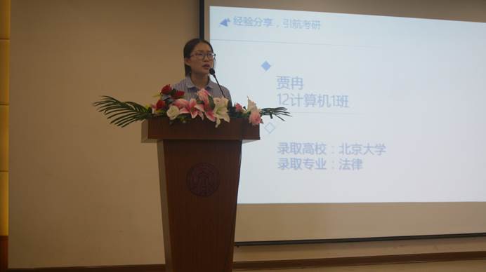 分享会在轻松热烈的氛围中拉开帷幕,首先由考入北京大学法律专业的贾冉学姐发言。在她看来,兴趣是最好的老师,正是她对法律的兴趣才支撑她走过了艰苦的考研时光。考研难在坚持,她建议同学们要理性地评估自己,为自己定一个合适的目标院校,始终谨慎并保持乐观。接下来,考入辽宁大学经济学专业的张馨慧学姐为大家总结了数学的复习方法,分享了自己的复习计划,并对同学们暑假期间的复习提出了建议。她谈到考研要坚定信念,注重效率并保证充分的复习时间。之后,考入伦敦大学学院的王钰学姐也为大家详细讲解了申请国外研究生的注意事项及方法。特别的是,顺利考上同济大学管理科学与工程专业的孔祥豆学长专门为同学们印发了一些传单,上面列出了他推荐的若干关于考研的微信号、微博、视频和考研辅导书。他强调了英语作文的重要性并提到了考研过程中同学互相激励的作用,孔祥豆学长以过来人的身份警示大家,考研重要的不只是结果,考研的过程更重要,不管结果如何,我们都能从中学到很多。而考入北京邮电大学计算机科学与技术专业的密雅琪学姐则向我们强调了复试的重要性以及她在复试中逆袭的经验。她告诉我们要和导师经常交流联系,摆正心态,考研的复习过程中要脚踏实地,切忌浮躁。