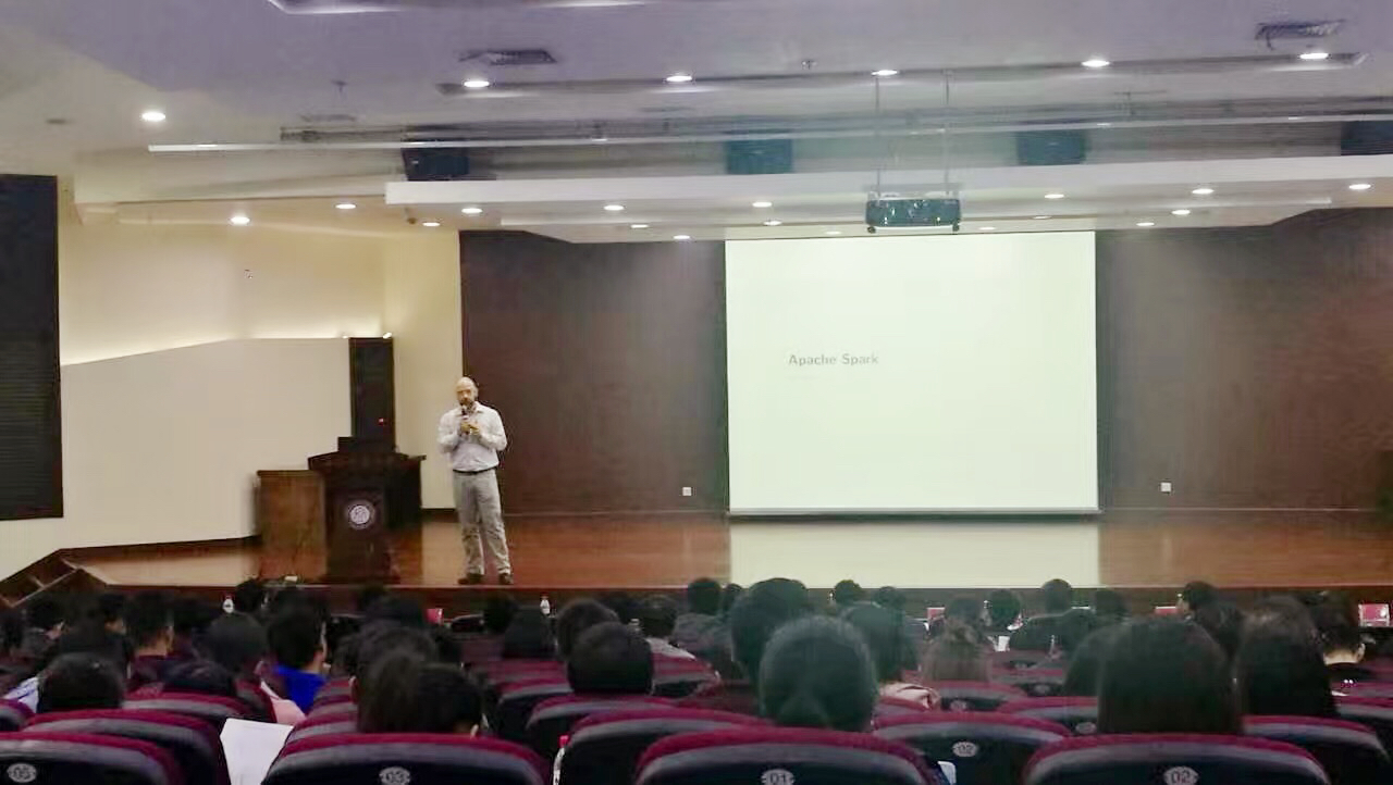 客座教授Christoph Schubert博士应邀以“使用Apache Spark在R语言里做大数据分析”为主题在大会上做主旨报告。Christoph Schubert博士首先指出近年来Apache Spark已经演变为一种“大数据操作系统”,目前或今后一段时期内Spark开发的重点是提高可用性和效率。他强调,随着Spark的不断发展和完善,基于Spark利用R语言来处理大型数据集是完全可行的,并通过案例进行了详细阐述。此外,上海雅捷信息首席数据科学家谢军、阿里巴巴集团高级技术专家刘应耀、华东师范大学汤银才教授也分别做了精彩的大会主旨报告。