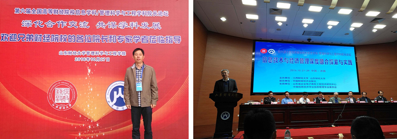 全国高等财经院校信息和管工学科院长论坛每年举办一次,其主旨是为全国高等财经类院校搭建一个学科建设和专业改革的交流平台,共享学科和专业所取得的经验和成果,推动我国高等财经类院校信息和管工学院的建设与发展。本届论坛的主题是“信息技术与经济管理深度融合探索与实践”。围绕这一主题,清华大学经济管理学院管理常务副院长、教育部管理科学与工程类学科教学指导委员会副主任陈国青教授,中央财经大学信息学院院长朱建明教授、吉林财经大学管理科学与信息工程学院院长王丽敏教授、江西财经大学信息管理学院院长毛小兵教授、山东财经大学管理科学与工程学院院长助理刘位龙教授等先后就信息技术与经济管理深度融合主题做了报告,详细介绍了各自学院所取得的经验和成果。