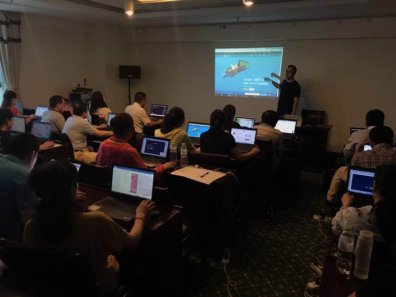 该研修班于2017年6月16日-20日在青岛举办,采用纯案例驱动模式授课。主要授课内容包括:HTML5介绍、常用H5开发工具、主流JS开发框架、H5作品展示、Mugeda H5平台操作等。主办方聘请了具有丰富开发实战经验的资深开发人员授课,从案例入手讲解知识点,穿插大量的关键应用演示和相关学习资源,注重HTML5开发知识的推广、分享和交流,通过案例快速领悟HTML5的开发新技能。课程的各个环节都经过精心的设计,案例确保设计与实现的全面整合,精巧的案例直接可用于课堂教学,完善的教辅资源使教师授课事半功倍,条理清晰的思想脉络能够加快新课程的研发进度。培训结束前,主办方还进行了相关内容的测试,全面的检测了培训的效果。