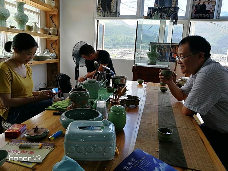 特色小镇是浙江旅游的金名片,是构建农村电子商务生态圈、带动农村经济转型升级的重要载体。调研活动的第三天,服务团便来到了龙泉市的特色小镇——“青瓷小镇”。小镇位于龙泉市上垟镇,其主体是龙泉披云青瓷文化园,2011年启动建设,2014年成功升级为4A级旅游景区。这里有“一日穿越千年”的青瓷博物馆、“自己动手丰衣足食”的青瓷制作体验区和“无处不青瓷”的传统文化酒店,在这里家家都以青瓷为主业,人人会制作青瓷,形成了颇具规模的青瓷产业集聚区、青瓷文化体验区和休闲旅游度假区,也是世界了解龙泉青瓷文化最好的窗口。参观“青瓷小镇”的过程中,服务团也深入居民家中,与居民交谈,了解了居民家庭收入、电子商务使用情况及需求等,并就目前旅游电子商务的发展问题和双方下一步的合作方式等进行了交流。