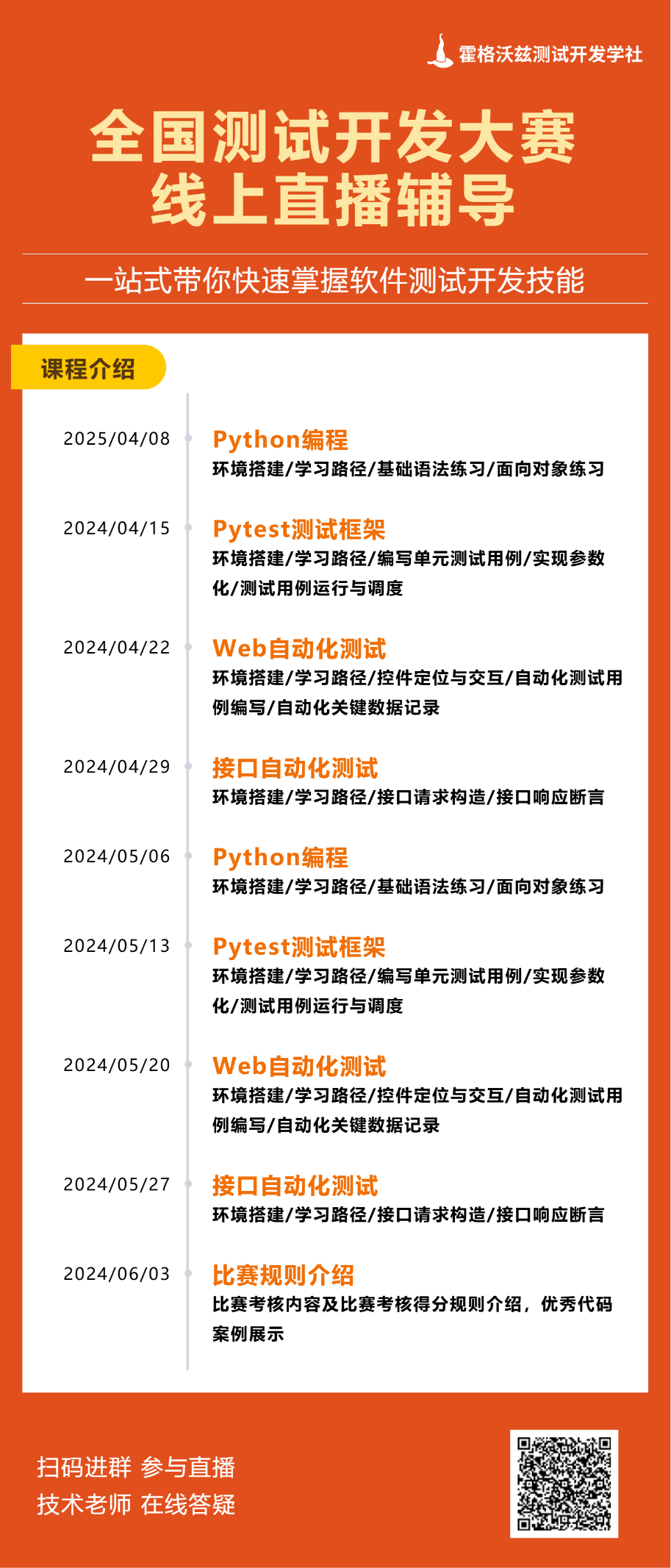 个人参赛,在限定的时间内,参赛选手需运用Java或Python编写Web自动化测试程序,完成指定测试任务,并提交相应的测试脚本。