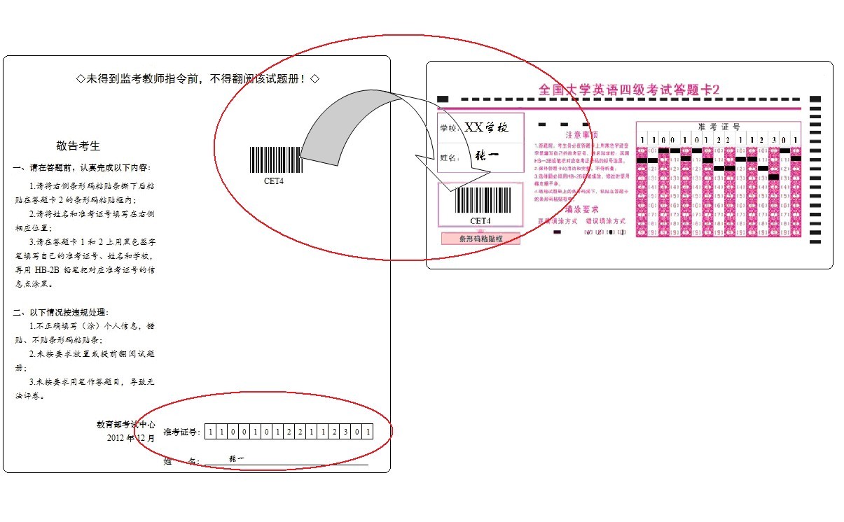 采用“多题多卷”模式后,考生在正式开始作答前,除按以往要求正确填写(涂)答题卡1和答题卡2上的准考证号、姓名等信息外,还须将试题册背面的条形码粘贴条揭下后粘贴至答题卡2左上角的条形码粘贴框内,并正确填写试题册背面的准考证号和姓名