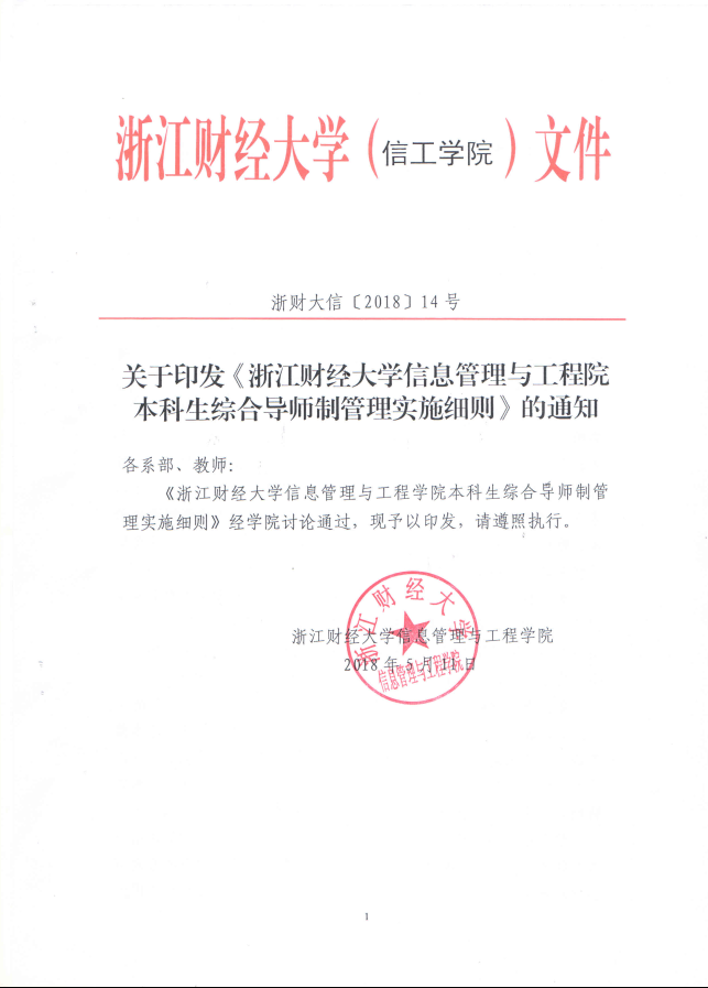 关于印发《巴卡漫画 信息管理与工程学院本科生综合导师制管理实施细则》的通知