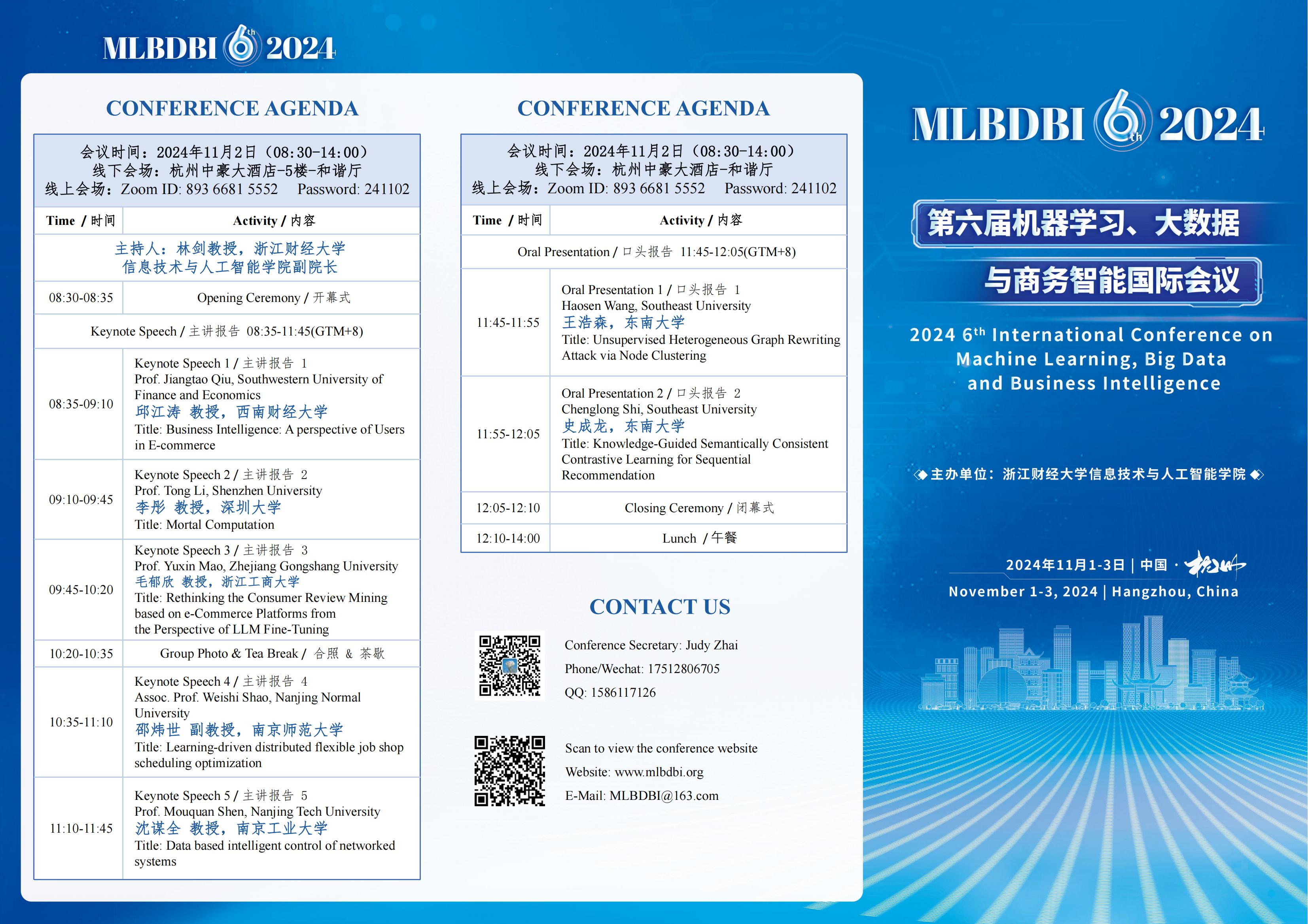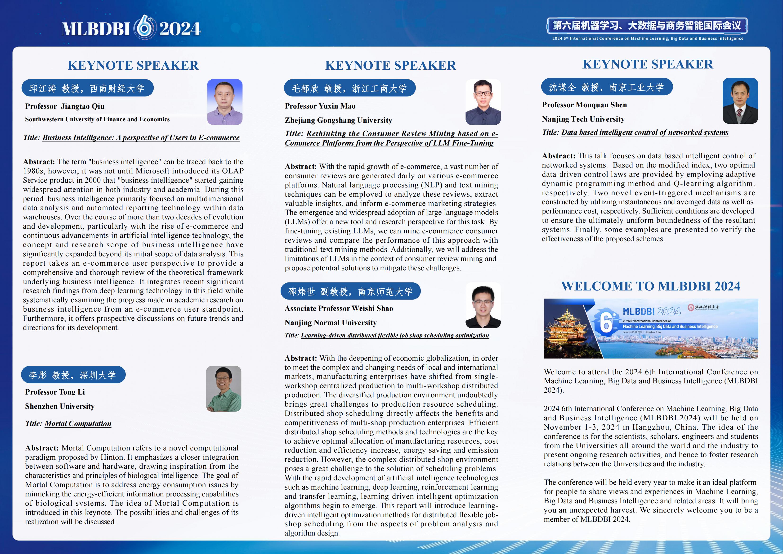 【浙财50周年巴卡漫画 学术论坛活动】第六届机器学习、大数据与商务智能国际会议