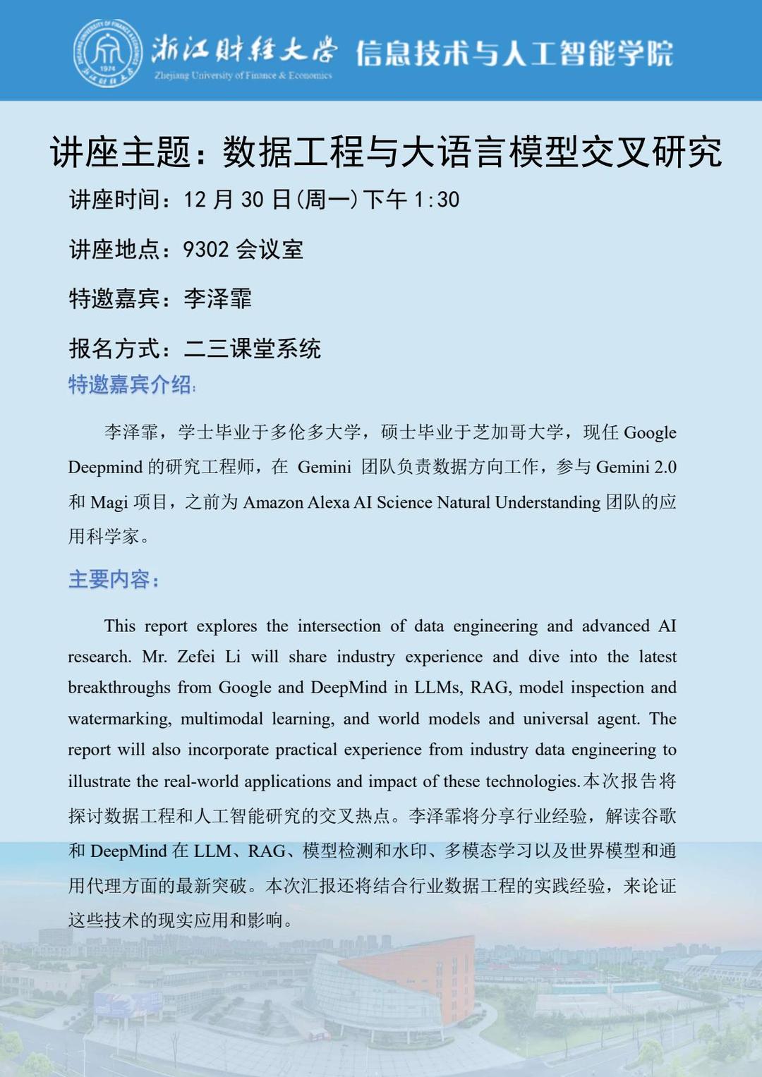 数智钱潮讲座系列 | 数据工程与大语言模型交叉研究