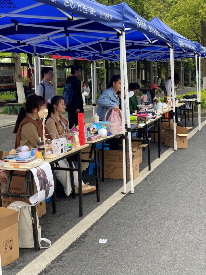 之后于4月27日10:40-17:00在文化长廊进行摆摊售卖,由园区工作站成员和各班班委共同管理摊位,摆摊期间支持全校师生购买物品或捐赠闲置物品。活动结束后,工作人员对周边卫生进行了清理并对物品出售情况统计汇总,并将未能出售的物品进行妥善保管。